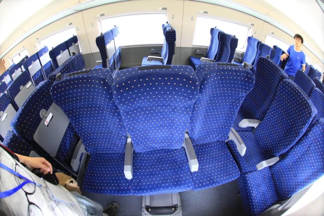 而现在的动车组列车的横排式座位更多参考的是飞机的设计,统一面向一个方向。