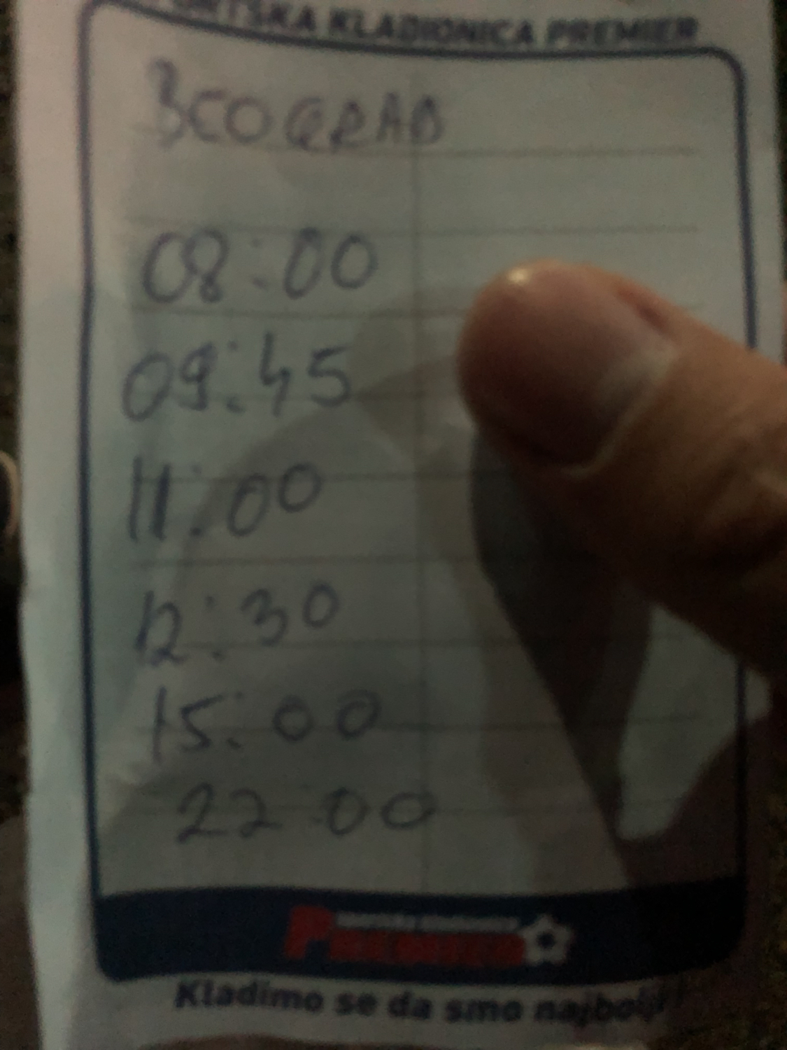 萨拉热窝有两个车站,市内的国内车站每天只有一班车回贝尔格莱德,好像是早上6点左右,离市区较远的东汽车站是国际车站,车次稍微多一些,下面这幅图就是车站工作人员写的回贝尔格莱德的时间。========== 如果你觉得TA的回答不错,快来给TA点个赞吧! 你的支持是对作者莫大的鼓励~显示全部