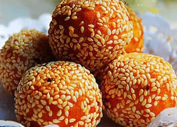 仅凭着一个锅头,一堆炭火,一瓶油,一盆面粉,一碗芝麻,转瞬之间,白面在油锅里上下翻腾,白进黄出,一股浓浓的香味在街道上空弥漫,久久不散。