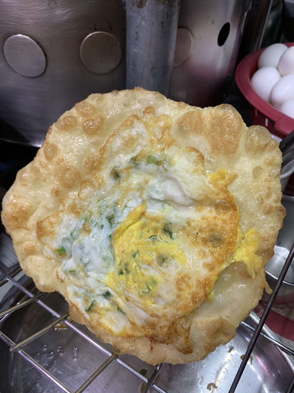 天津的煎饼果子,一定要用鸡蛋来排队
