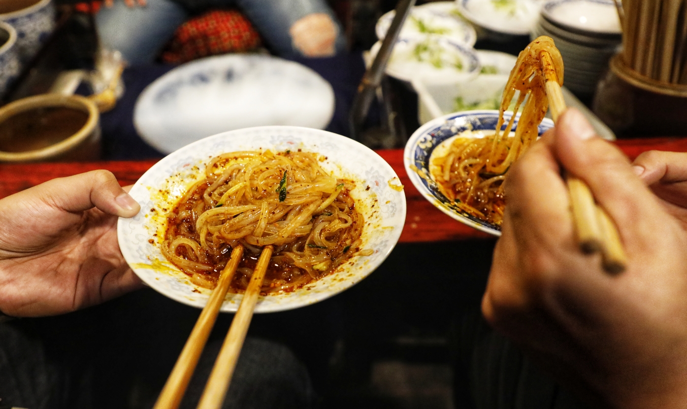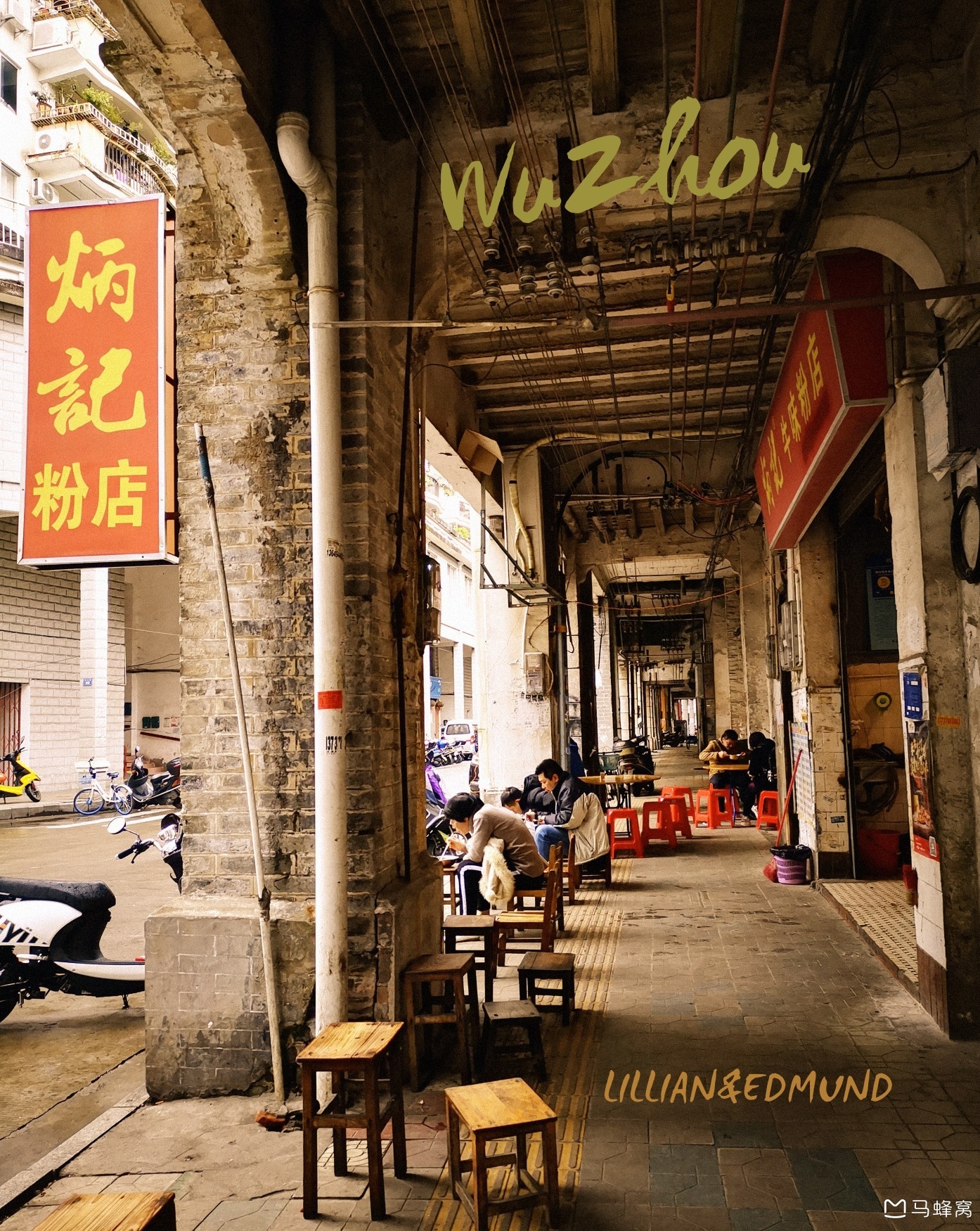 梧州的街边,一勺牛肉浇头铺上爽滑的米粉,就坐在板凳上嗦完