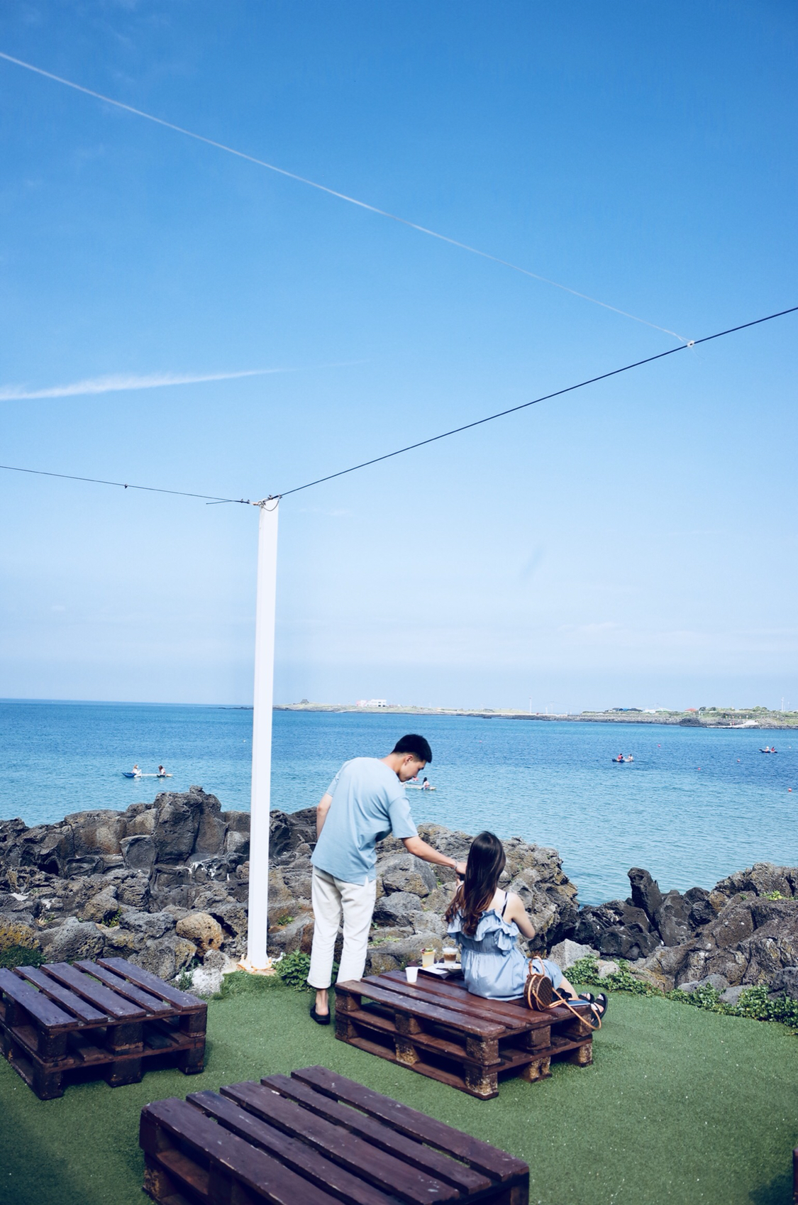 牛岛的海水还是不错的,不过阴天和晴天景色差距很大! 这是放晴之后 刚下了牛岛的船,看到这片阴天的海我都快哭了,我的妈我费劲吧啦来了这儿,你给我看这个! 后来吃了济州王子炸酱面,又继续坐环岛小巴士到了那个咖啡馆的时候终于放晴,咖啡馆名字叫,Blanc Rocher,看得到海景的咖啡馆,强烈推荐=...显示全部