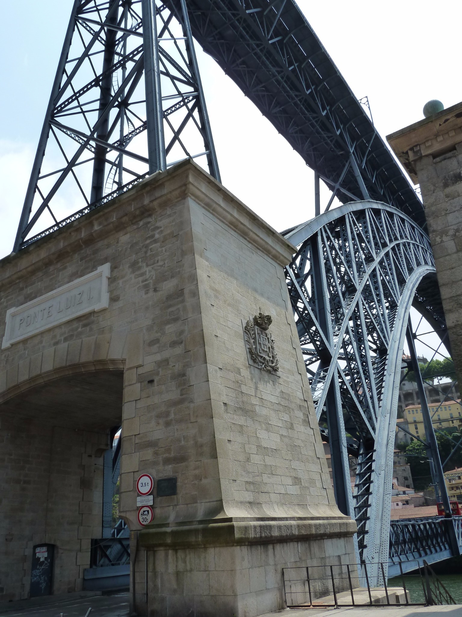 走近堂路易斯一世大桥 桥门雄浑敦厚 精雕细刻的徽章 历史的厚重积淀