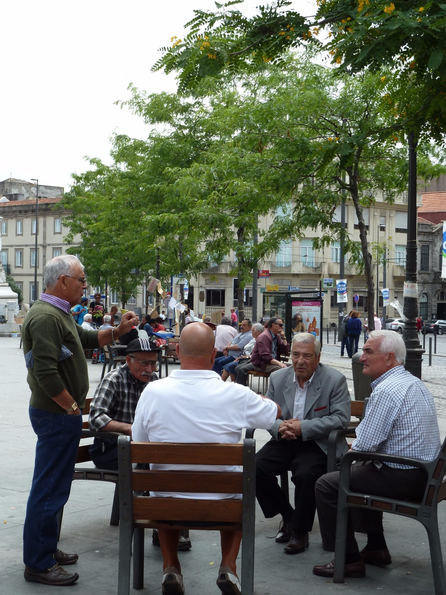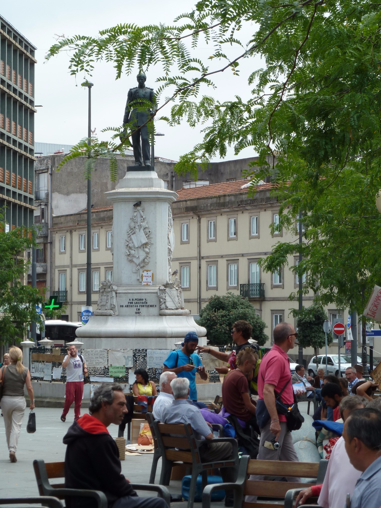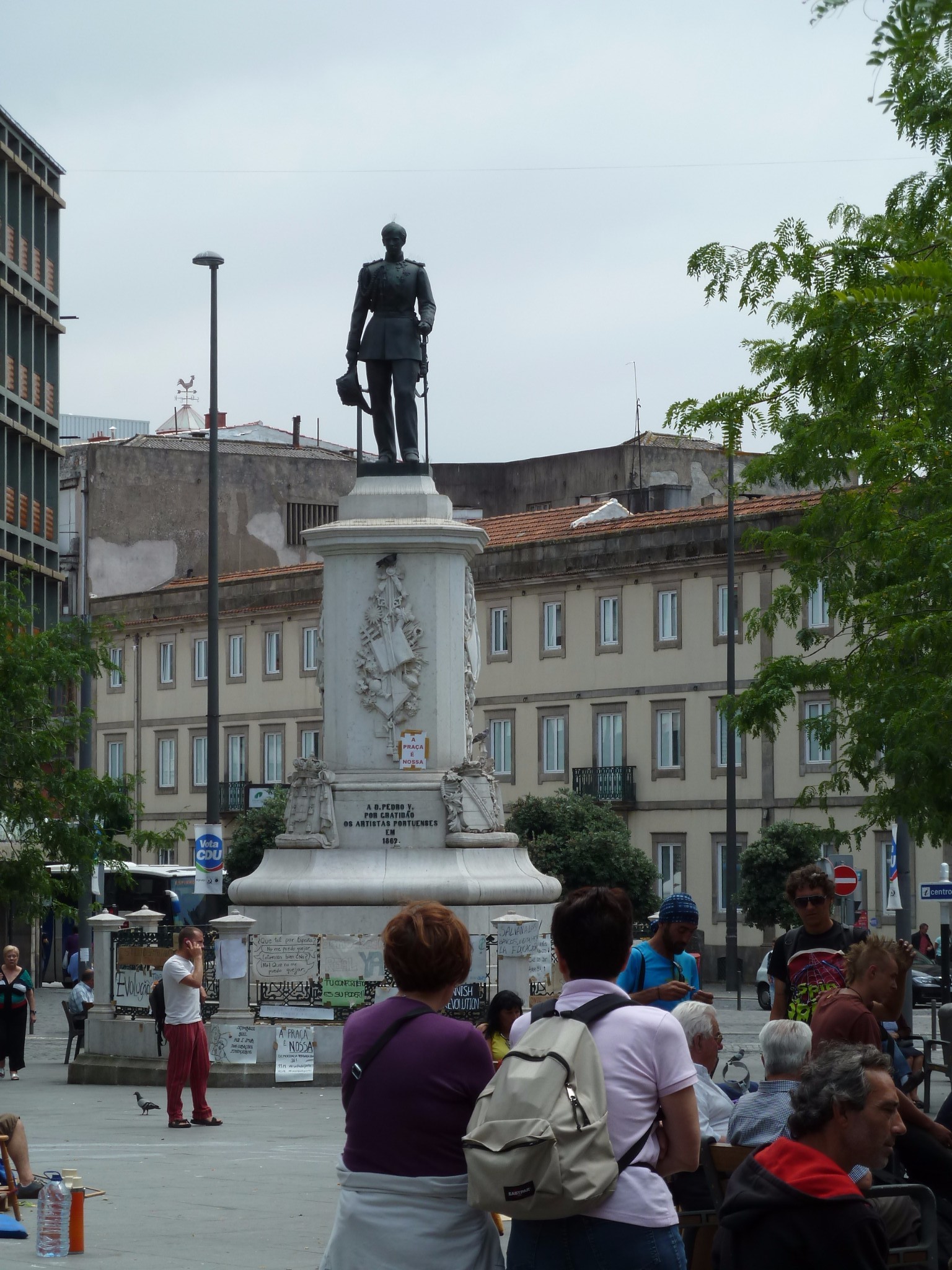 广场中心是国王佩德罗五世的雕像 背后的建筑是著名的战斗宫(现在改用作邮局) 周围是散落的桌椅 很多人闲坐在这里 晒晒太阳聊聊天