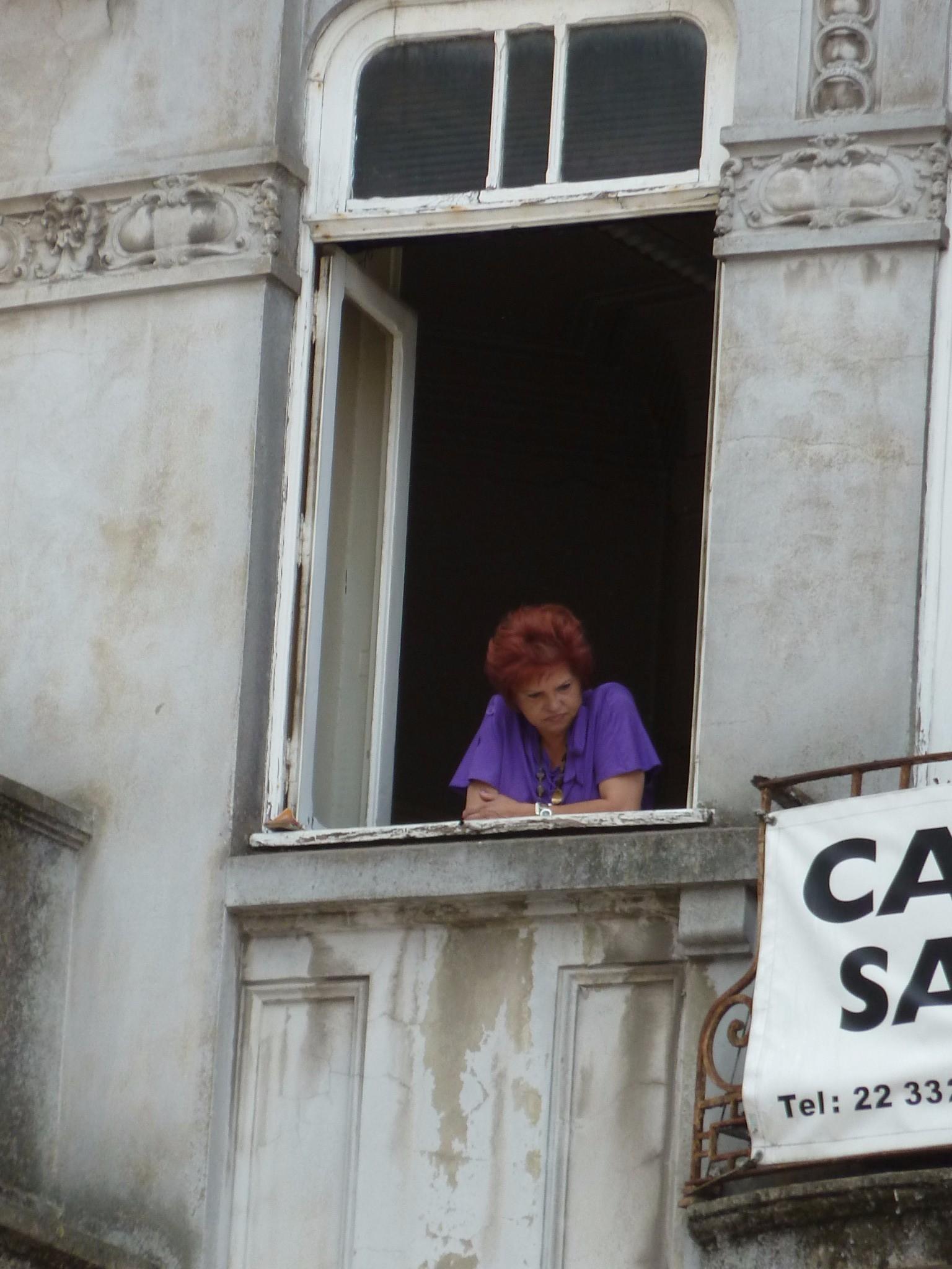 这位红发紫衣的大婶 趴在窗台上 是不是在聚精会神地观察着大爷们?(鬼脸)(酷)