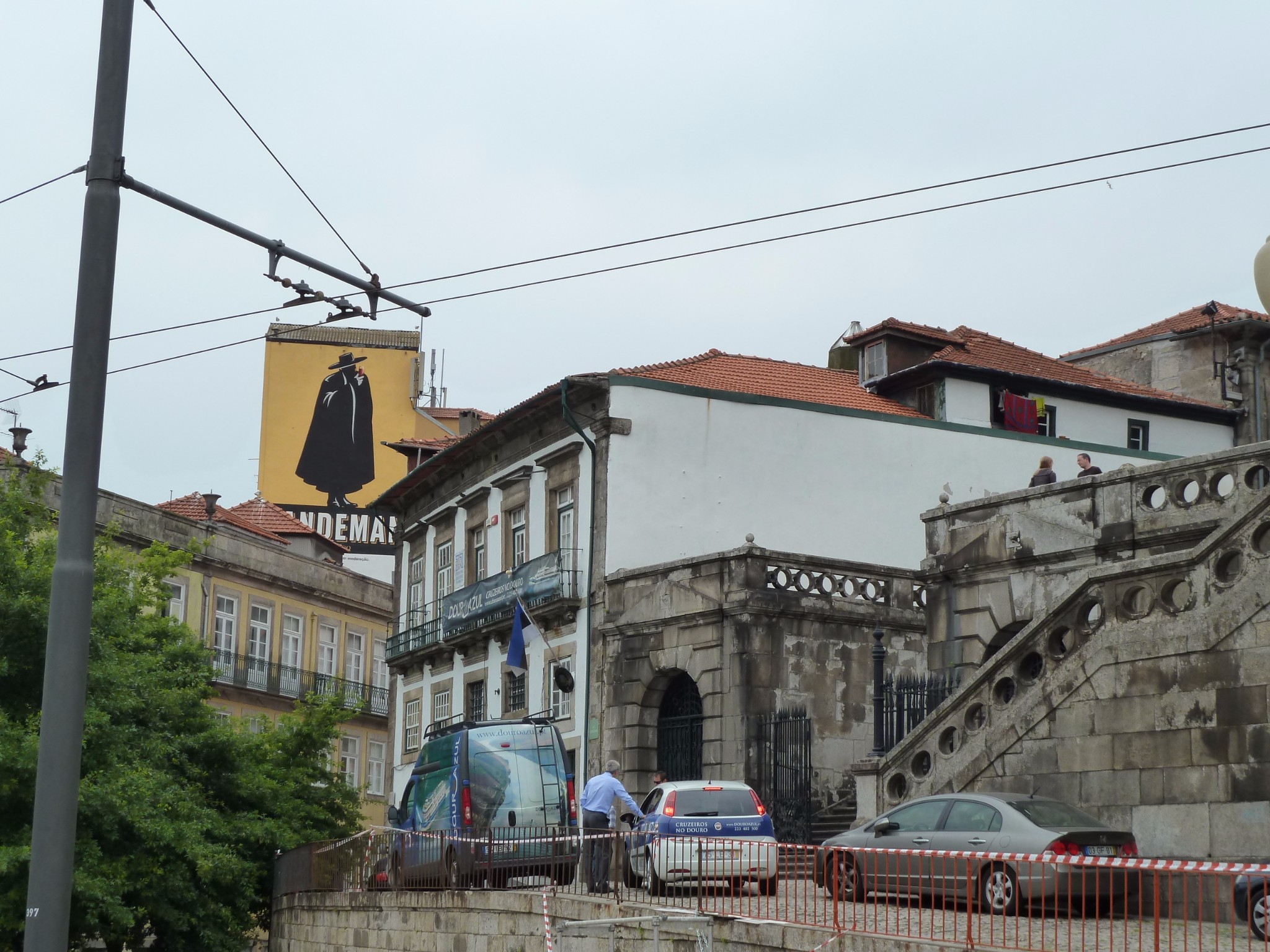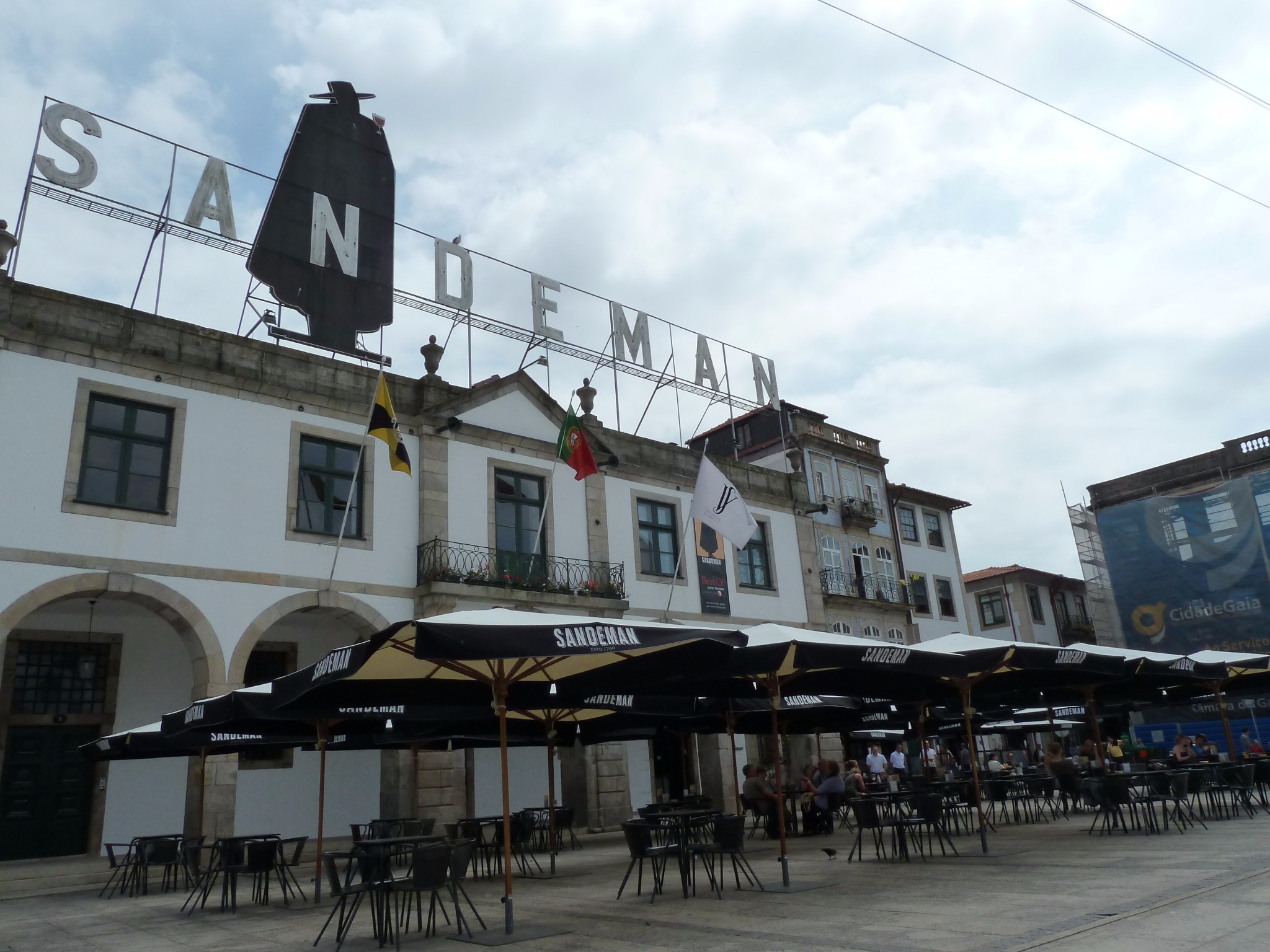 古旧的小码头上 高高悬挂的Sandeman酒庄招贴画 英俊神秘的佐罗