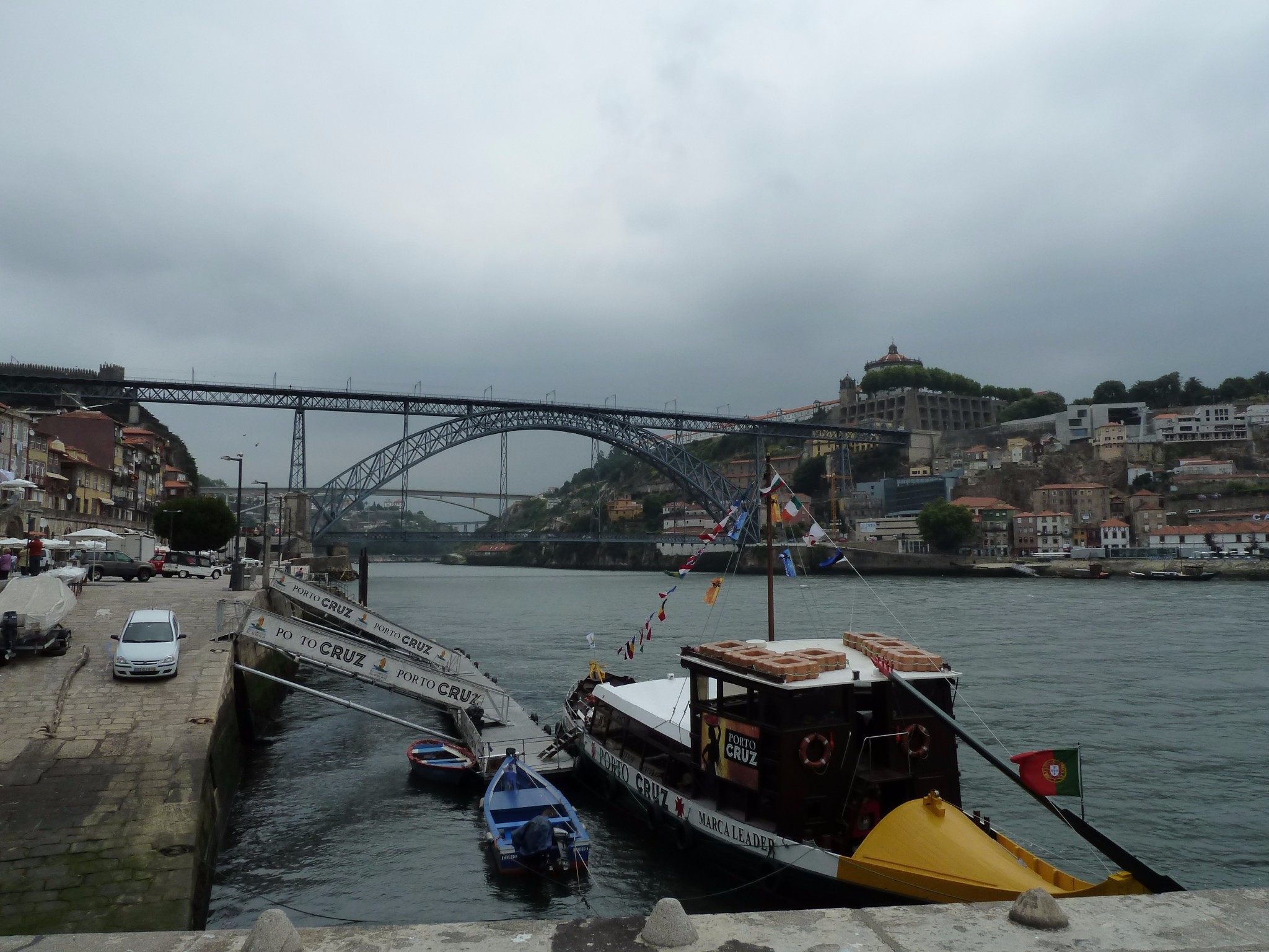 向北遥望 是著名的堂路易斯一世大桥 她倨傲坚强 横跨两岸 把远处的城堡和眼前的游船都映衬得格外鲜活生动 优雅迷人