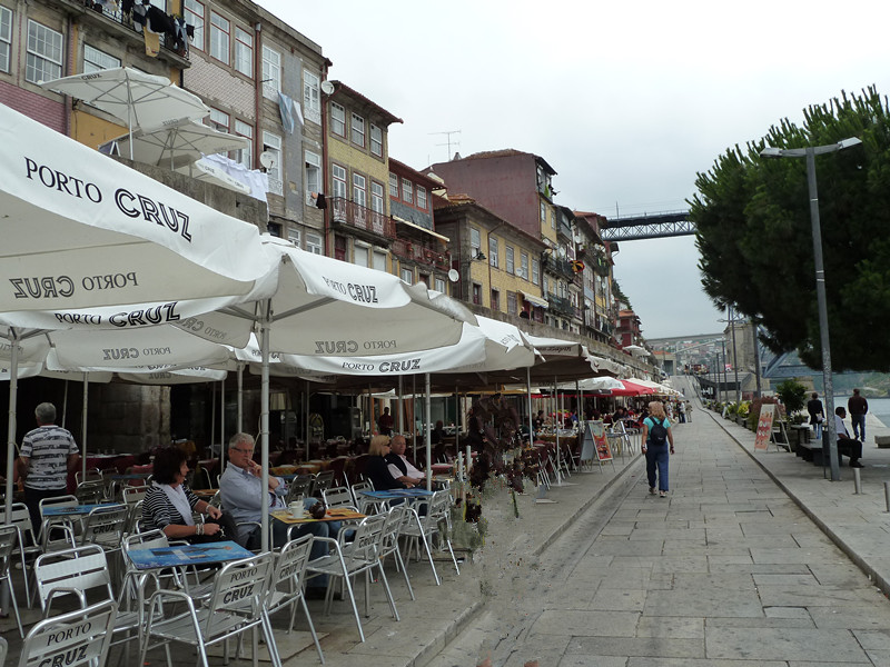 多罗河畔是多姿多彩的各式民居 密密麻麻的露天桌椅安静地躲在遮阳伞下