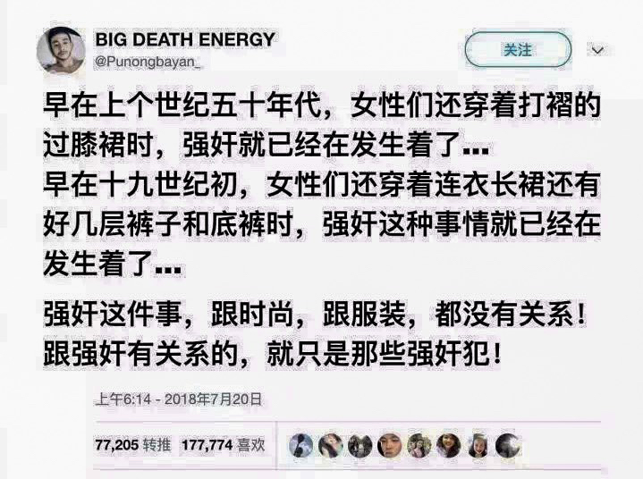 当侵害出现后,总出现一帮人关注的是受害者"错在什么地方啊?"是"你穿的暴露"。