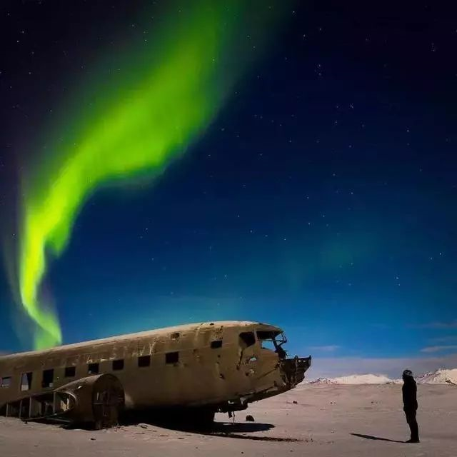 非常引人注目的摄影景点之一。它曾出现在多个著名艺人的MV里,包括红遍全球的加拿大男歌手贾斯汀·比伯。向北侧望去,你还会看到雄伟的米达冰川,南侧则是北大西洋凶猛震撼的白色,冲刷着黝黑的沙滩。 这架超酷的飞机残骸,是无数摄影师到