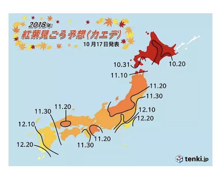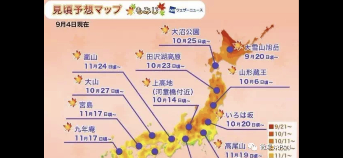 看今年的枫叶预测,最北端在9月底10月初就有了。给您预测图供参考:上面是红叶,下面是银杏。========== 如果你觉得TA的回答不错,快来给TA点个赞吧! 你的支持是对作者莫大的鼓励~显示全部