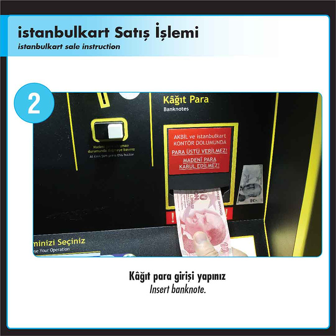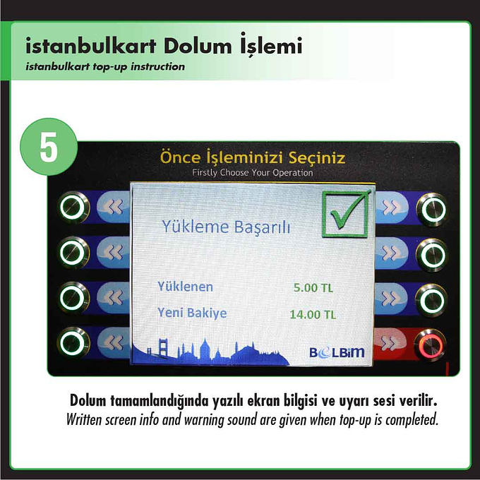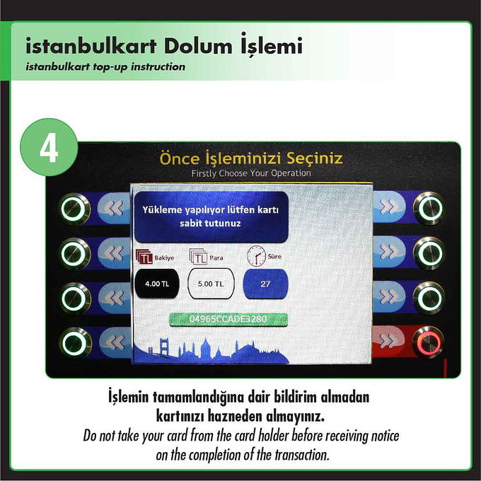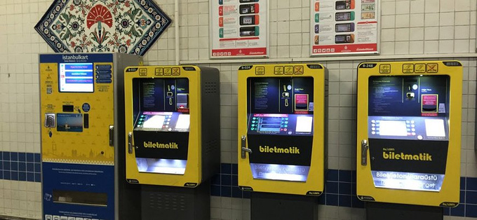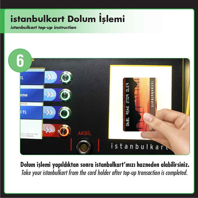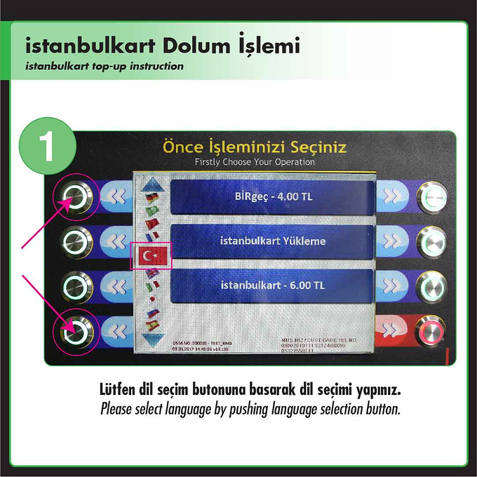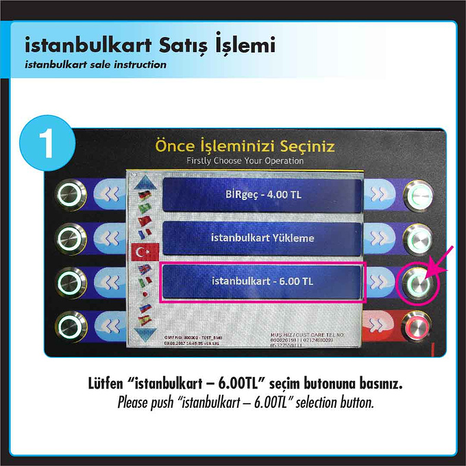 在机器的显示屏上有三个蓝色菜单的可以选择,这里我们选择istanbulkart-6.00TL这个选项,这里的6里拉 是指购买