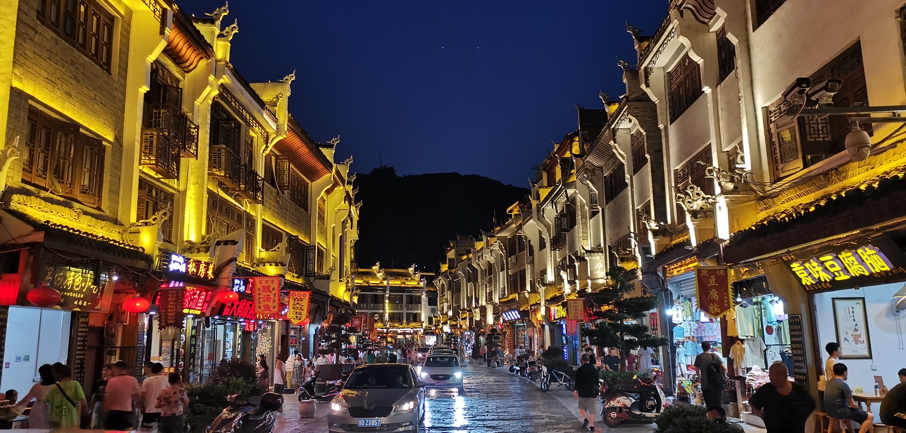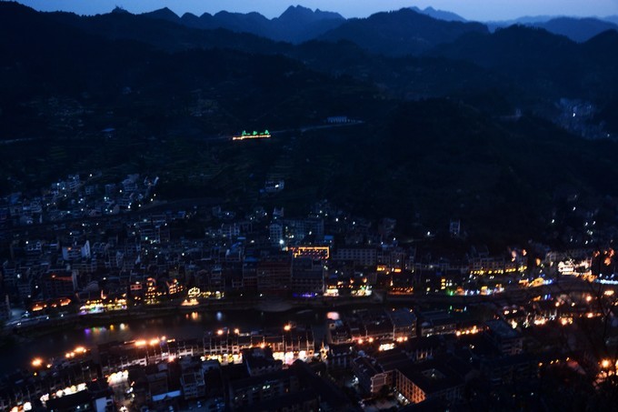 千户苗寨值得看的只有夜景了。进出景区,太麻烦,需要拖着行李箱走过各大商业区,而且也都是雷同的。