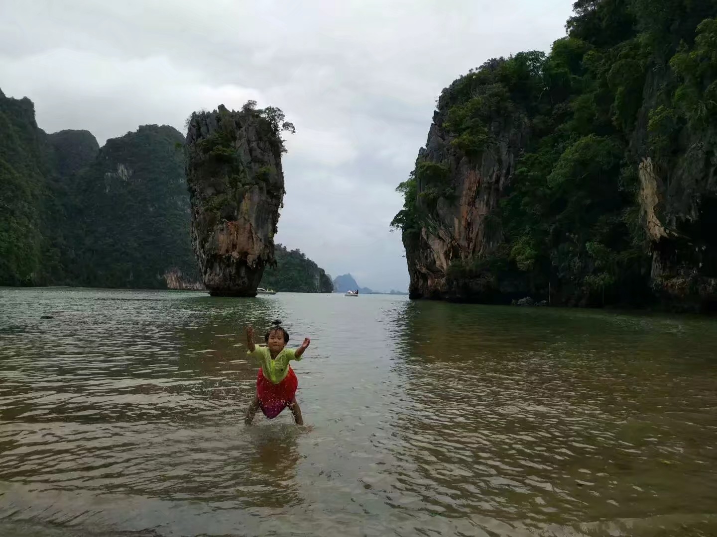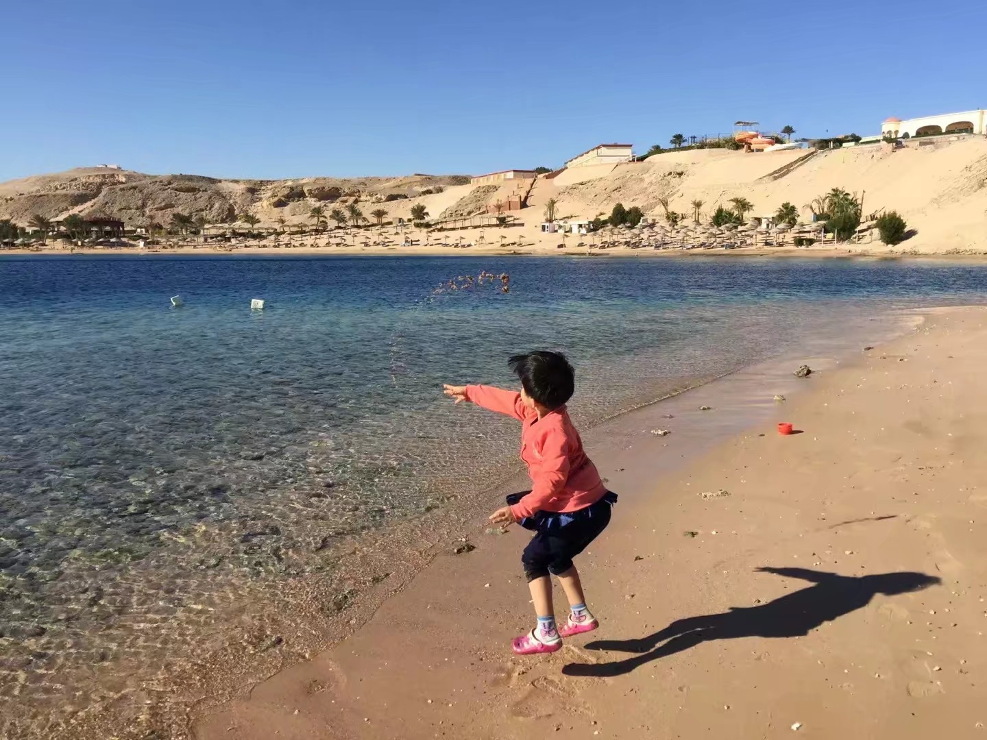 这是马来西亚关丹的海边,这里游人很少,当地女子还是本民族的传统,不脱衣服下水。这里的海水清澈透蓝,她们戏水无疑也是一道亮丽的风景。