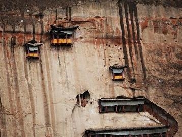 虽然崖壁实际上没有“照骗”中辣么高,但是建筑的风格与自然环境几乎融为一体,文物的美学价值很高!