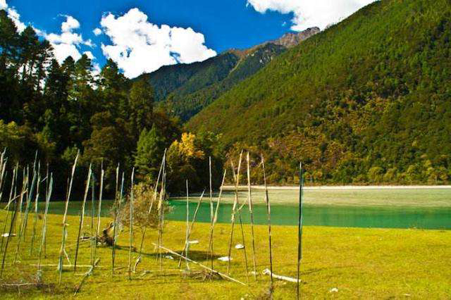 大金湖有山的雄奇俊逸,水的清丽幽雅;阳刚与阴柔相济,豪放与婉约互补;碧绿幽蓝的湖泊,同绵延数十公里的赤石群连成一体!