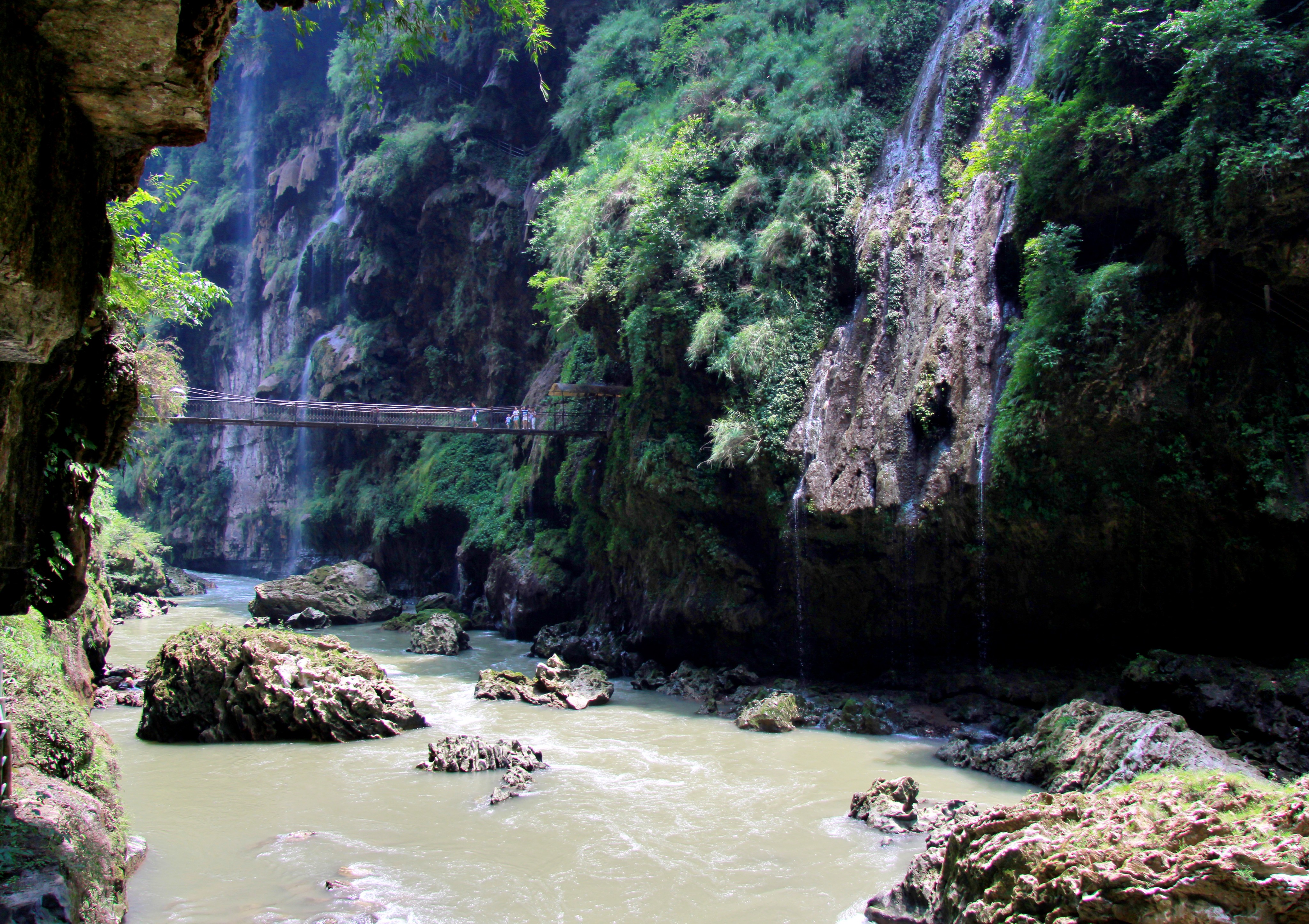 寨下大峡谷是2004年6月方被外人发现的,位于福建泰宁县城西北十五公里处的寨下村,由3条峡谷首尾相连而成,呈环状三角形,好似一条金色苍龙蜷卧在群山之中,故又名金龙谷。它也是泰宁修建的第一条地质科考路线,联合国专家称之为“世界地质公园的榜样景区”。
