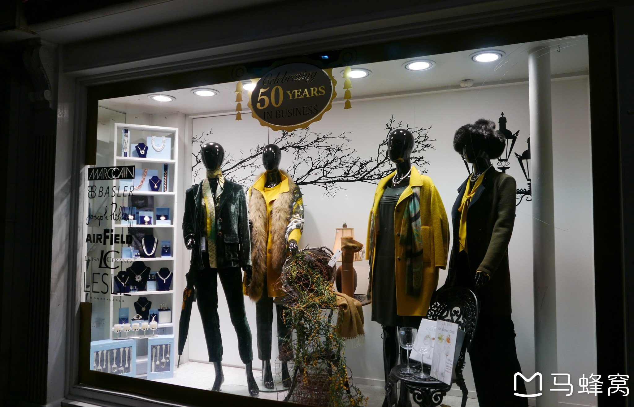 店铺虽然已经关门,但闪亮的橱窗里依旧时尚耀目异彩纷呈