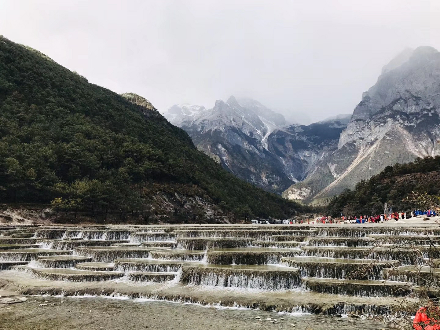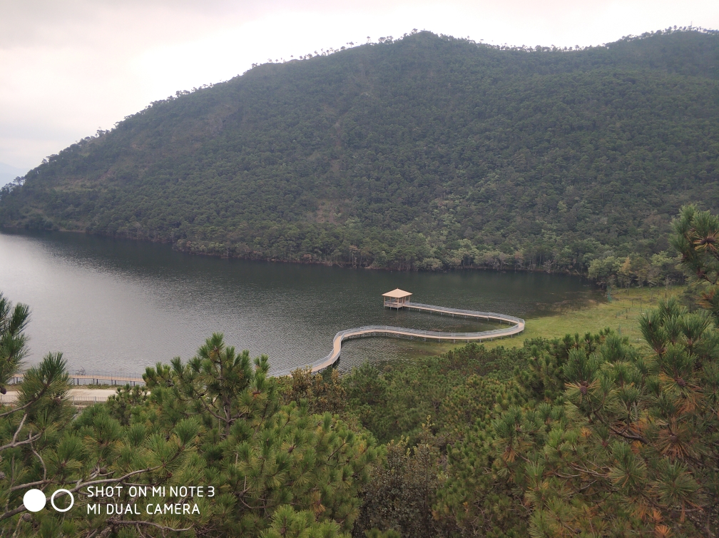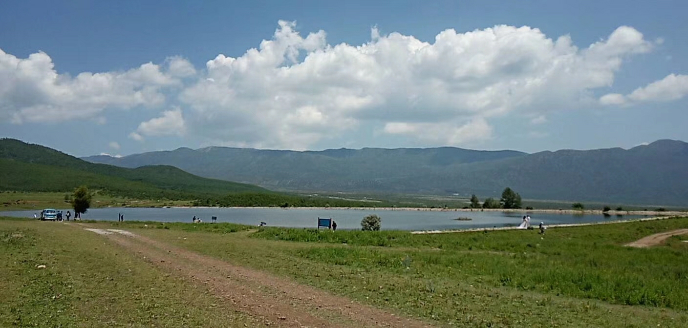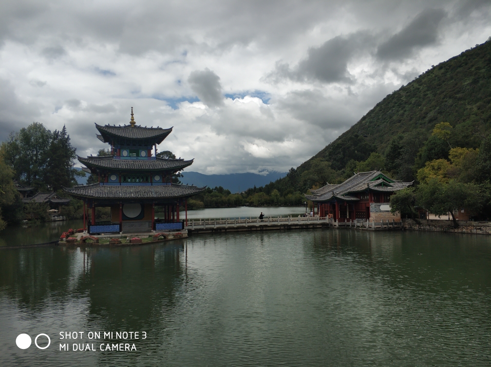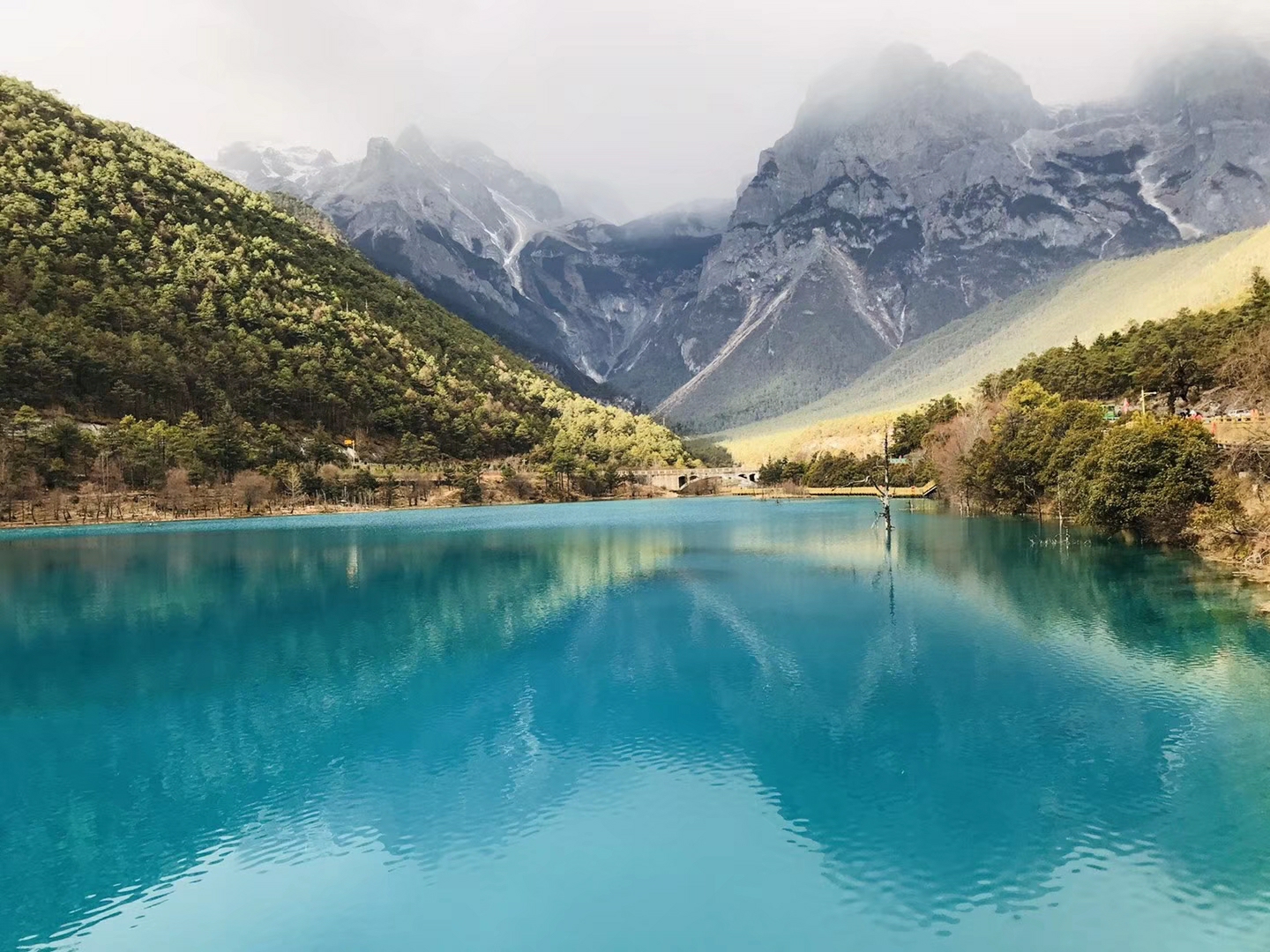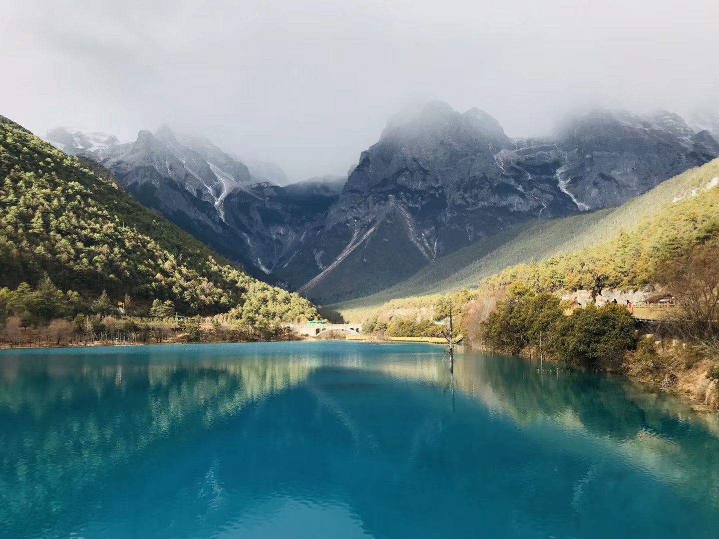 4.拍一次玉龙雪山的倒影:天气不错的话,从公园出来可以乘坐3路6路公交车前往清溪水库。这里是丽江市民的水源地之一,水库中间有一条小道,把整个的水库分成两半,小道上有两座拱桥,有很多的柳树。天气晴朗的时候,可以看到整个玉龙雪山的倒映在水面上。