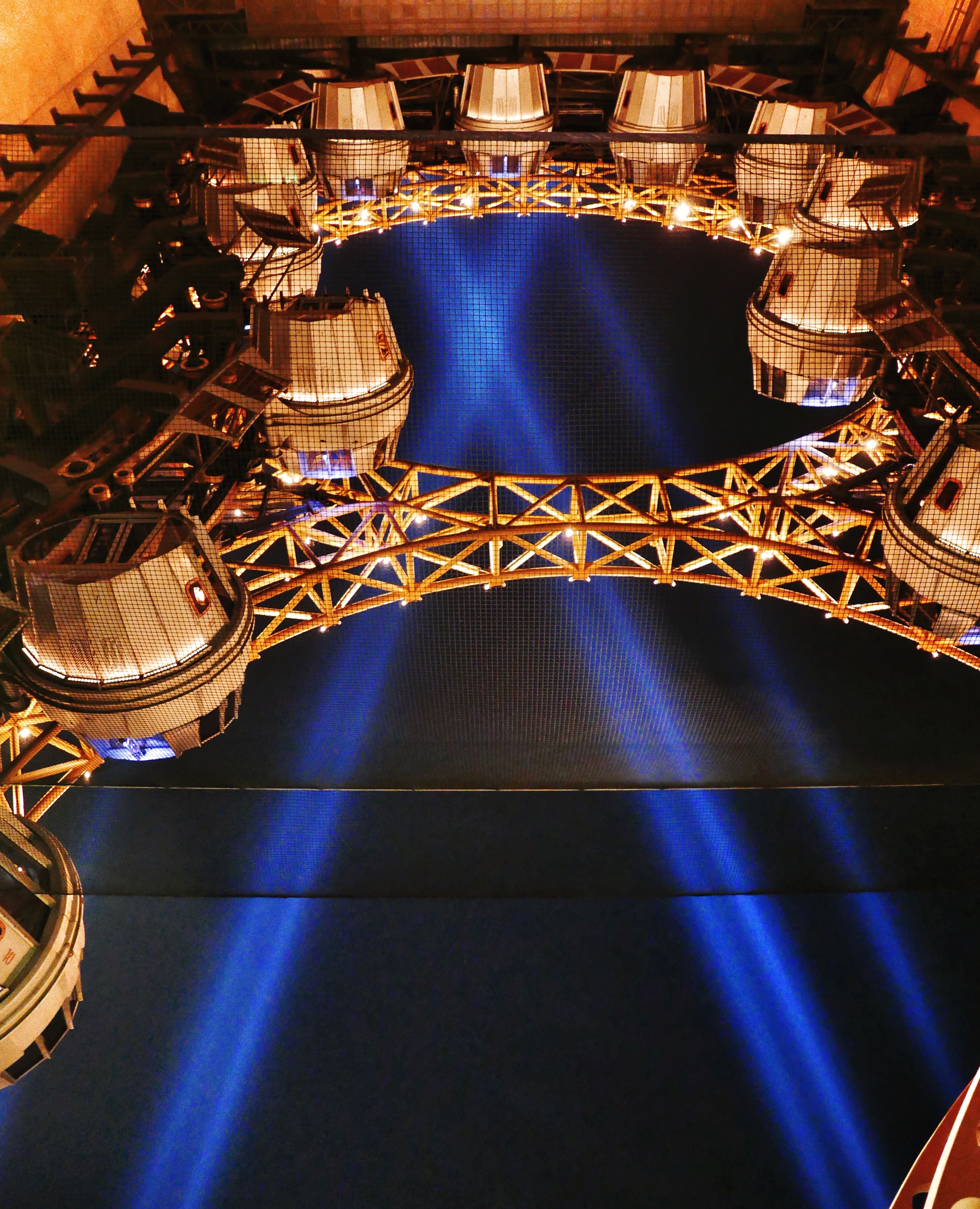水舞间表演深水池达九米深、潜水员每日平均在这待留6-8小时,过程中可以看到很多高难度而且极具美感的动作……每个表演者也是英勇地表演,极其专业。
