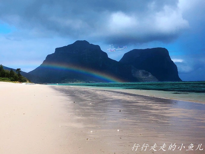 一道美丽的彩虹横跨Mt Lidgbird,梦幻