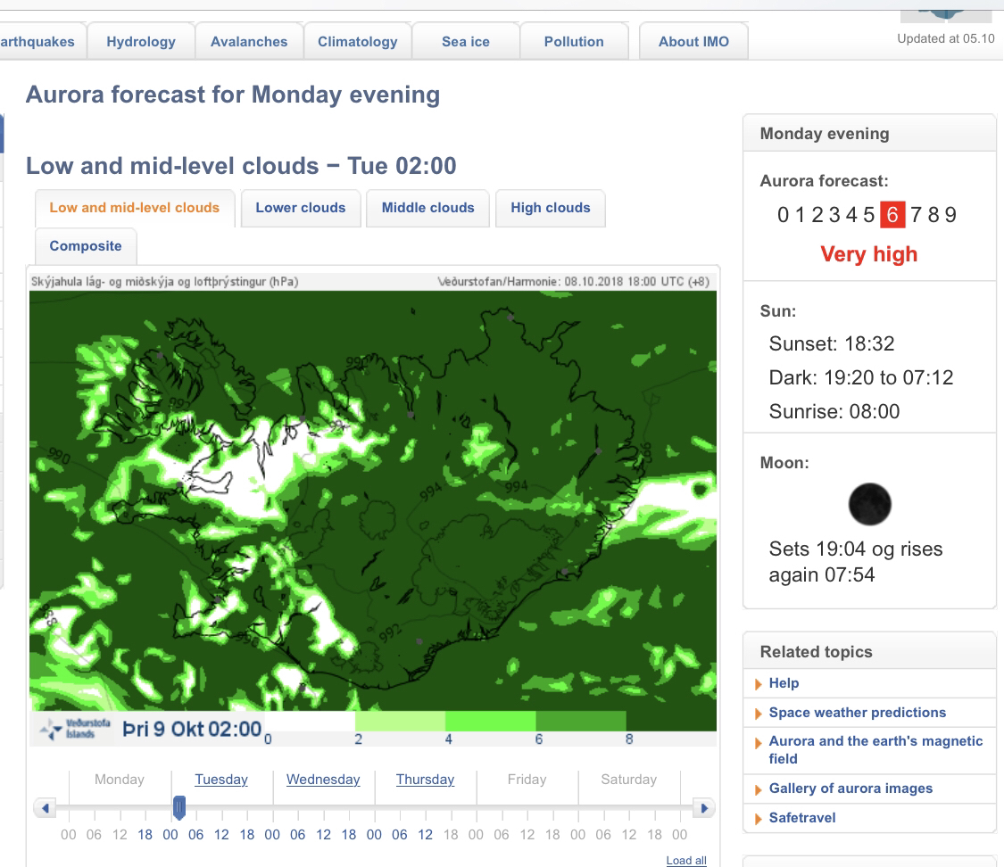 国庆去冰岛看见极光几率很大的,而且冰岛是全世界唯一一个可以全境看极光的国家但是看极光不能总看KP值 主要还是要躲避云层 因为10月份下雨比较频繁 所以云层可能也会多一些比如这样推荐一个当地极光导游会用的极光网站 一般来说极光指数达到2以上,人的肉眼就能看见极光了,如果指数是4以上就能...显示全部