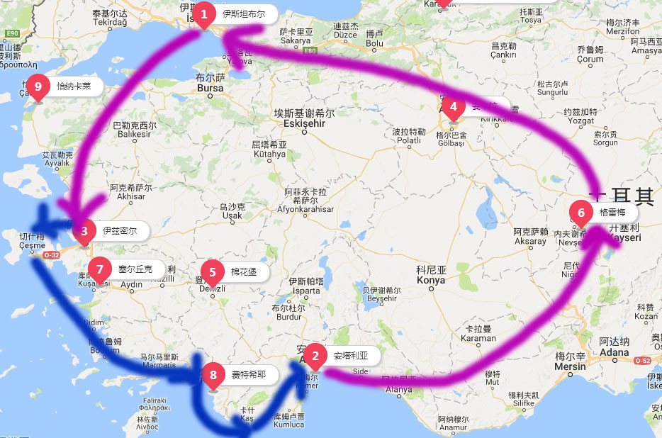 伊斯坦布尔。游玩蓝色清真寺,圣索菲亚大教堂,地下水宫,加拉太桥,博斯普鲁斯海峡游船等。宿