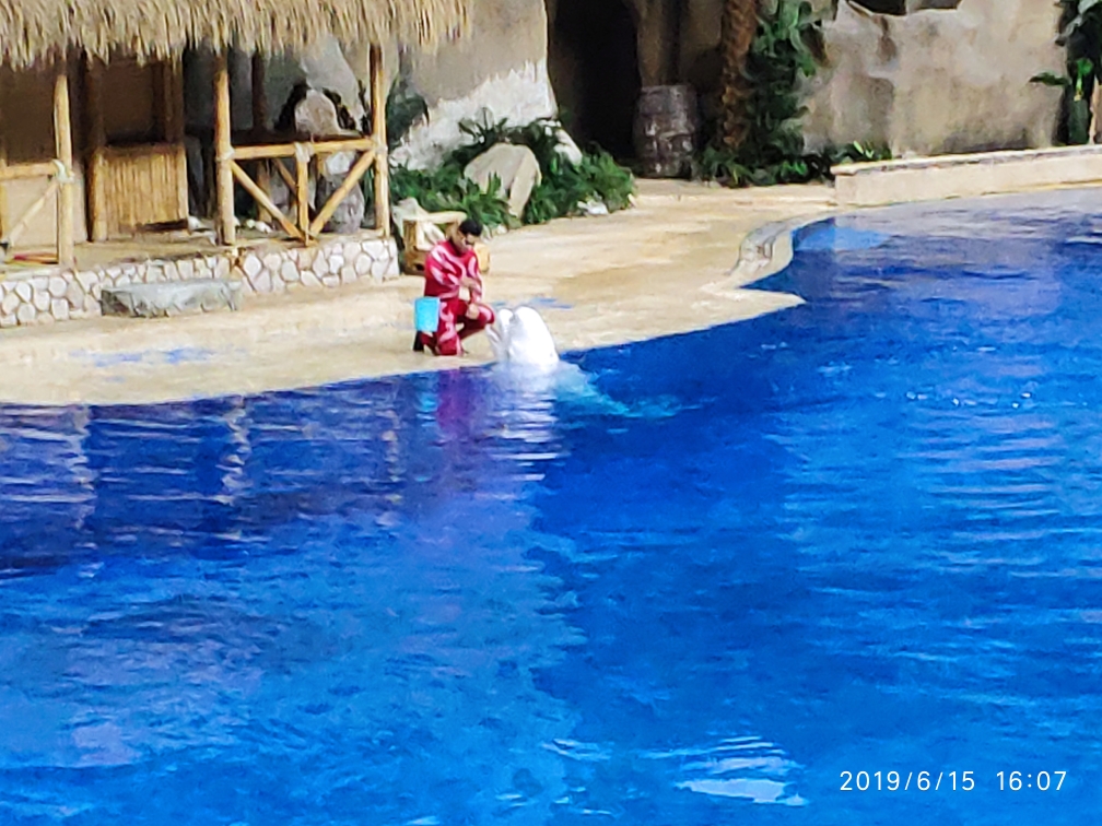 海豚在孩子的心里总是天使一般的存在,不过有些商业化了,就是你花钱才可以摸到海豚。