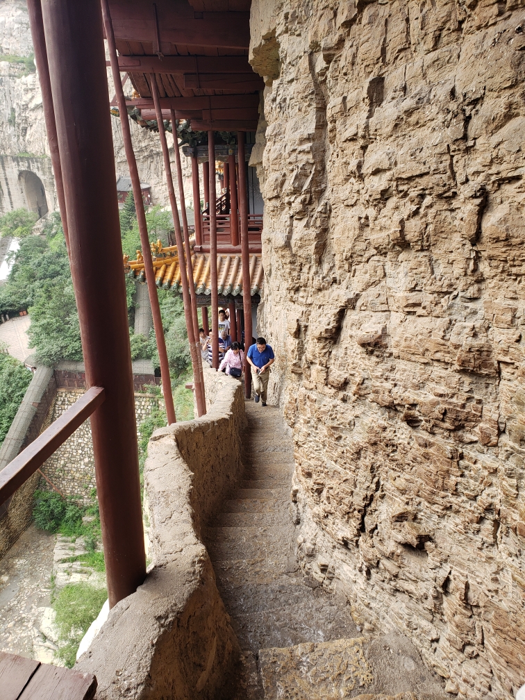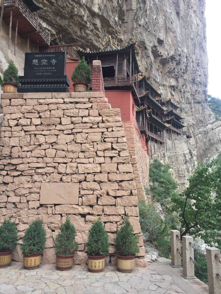 我2016年9月份去的悬空寺,因为我们下午要去北岳恒山,所以就是上午去的,上午人不多,本人恐高,吓得我一路直哆嗦,但是来了就一定要亲自上去体验一下,在下面仰视和上去身临其间绝对是不一样的,最高处的栏杆只有膝盖高,俩人只能侧身通过,我是手并用呃,如果游客少的话,还能慢一点仔细看,但是️时间限...显示全部