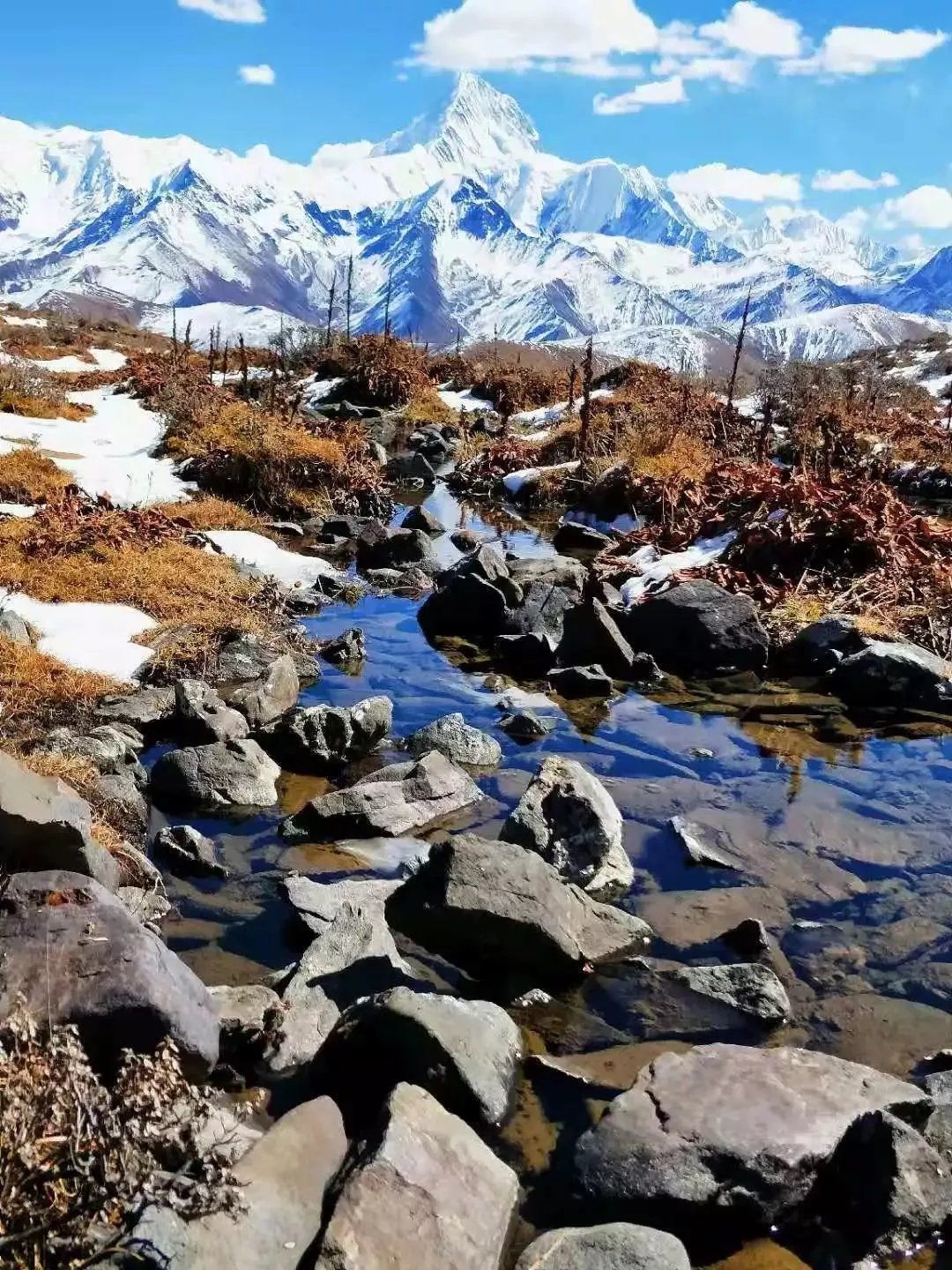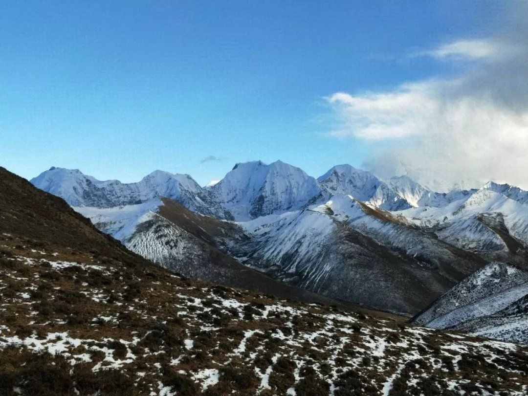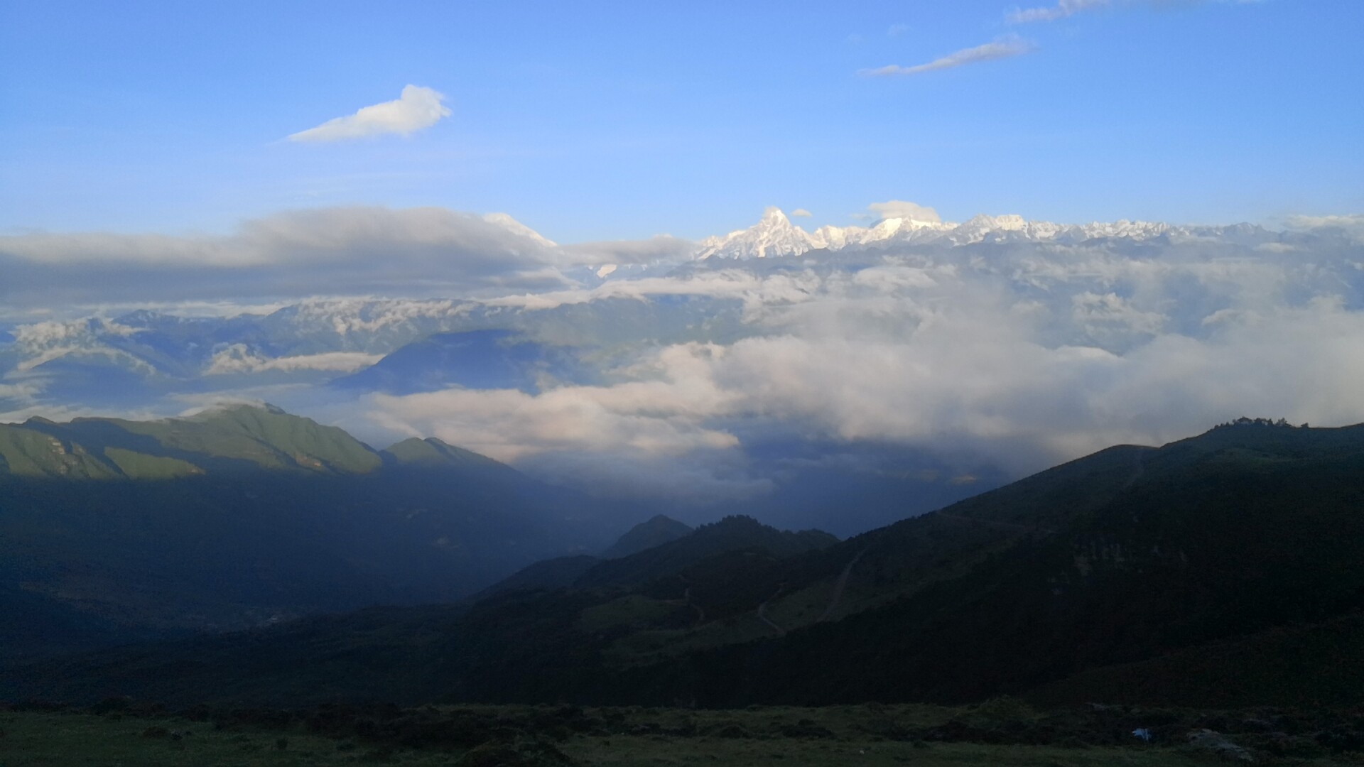 雪山,没有拉近的镜头,手机随手拍的,若是脚够长,我真想一脚踏过去。
