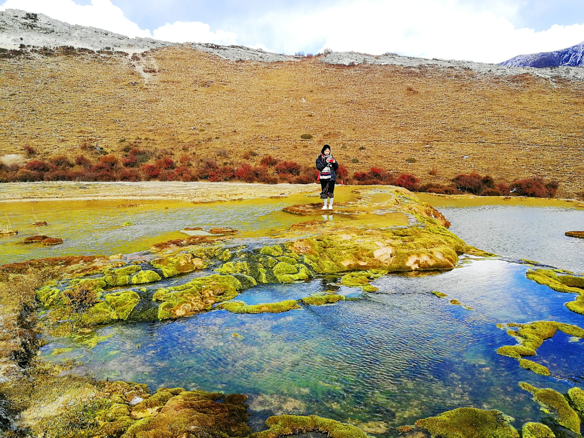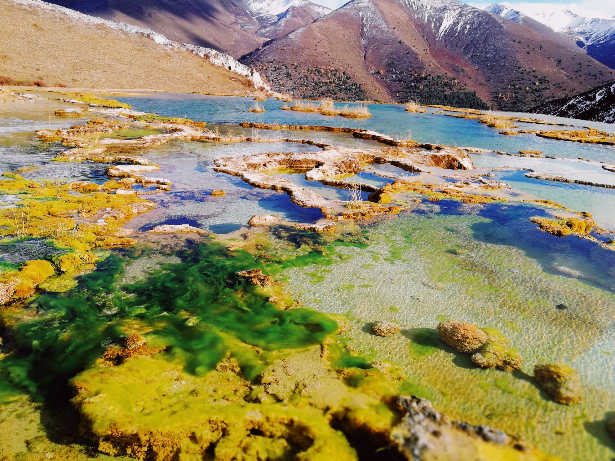 泉华滩彩池里水草相依,石花点点,给我的感觉就是:“藏在山谷里的缩小版黄龙