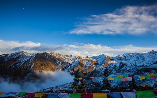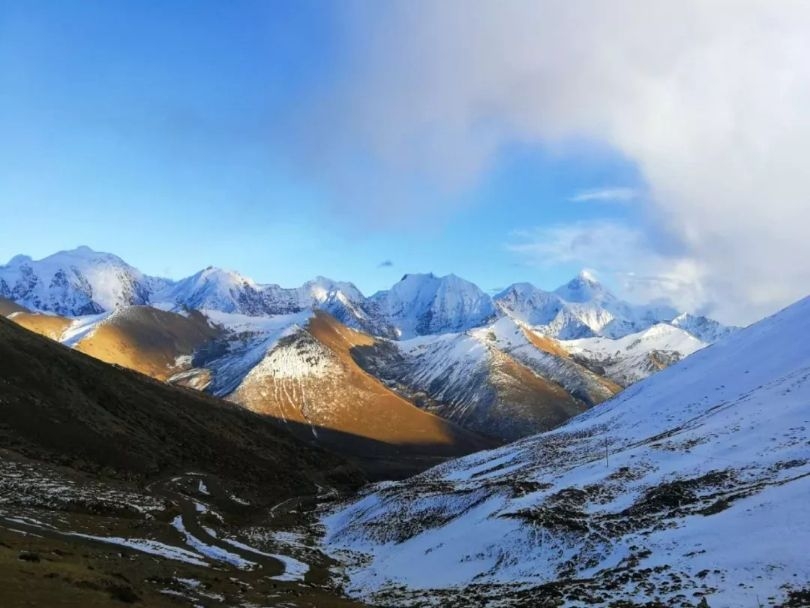 沿着冷嘎错往前行驶,翻越泥土路的盘山公路,那里就是牙哈垭口,此处的海拔4568米,在