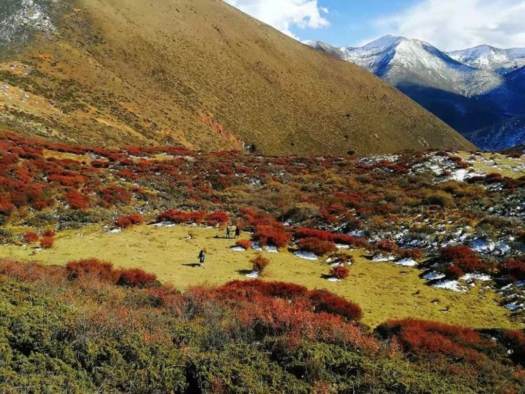 考虑到还没有去探索泉华滩,所以在冷嘎错上面没有玩多久,上山选择的是稍微远但且平坦的山体行走,下山则是选择直线距离最短,笔直下山的陡峭山路,从山顶到停车位置最快也需要40分钟的样子。