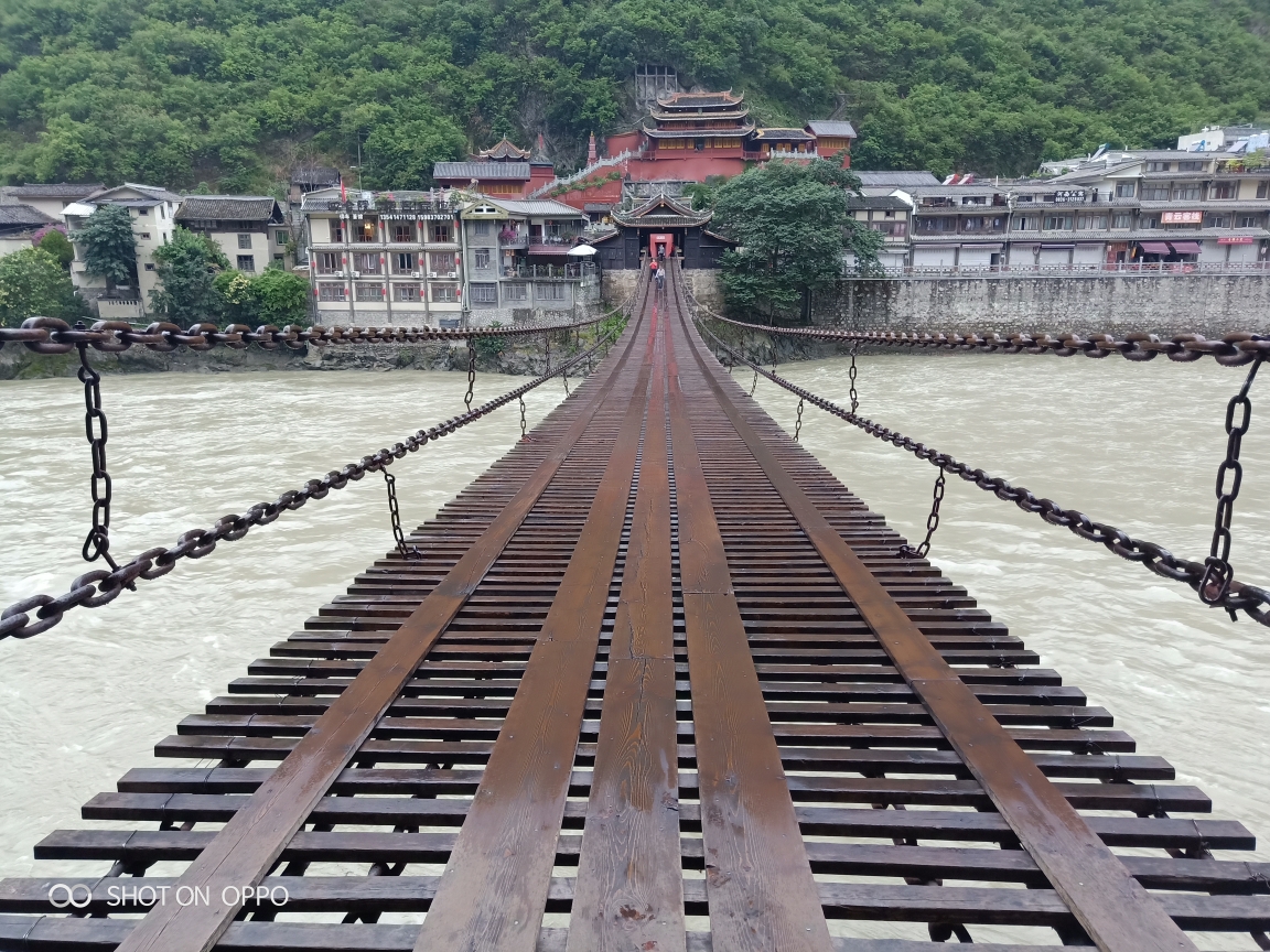 桥又称铁索桥,位于