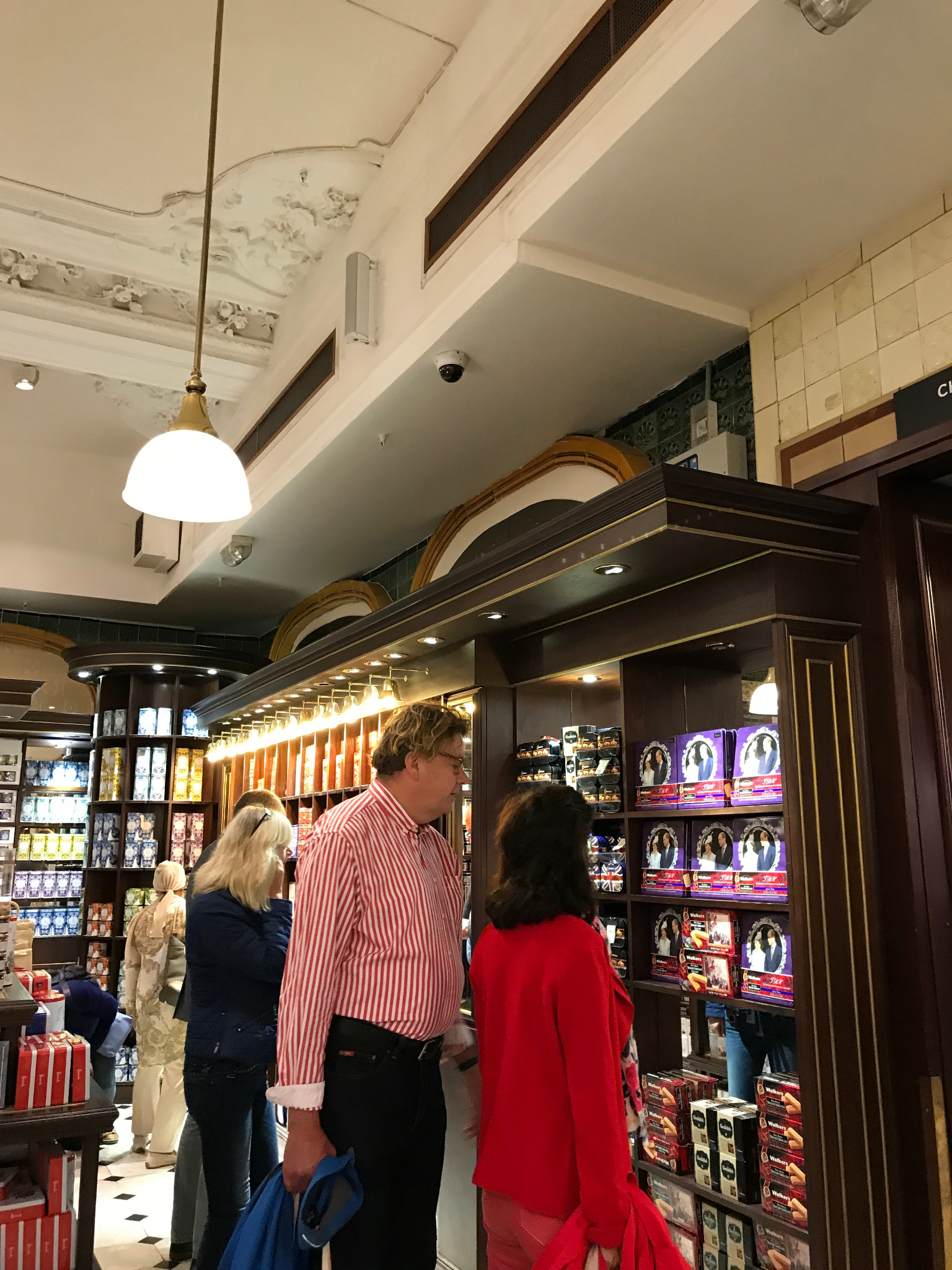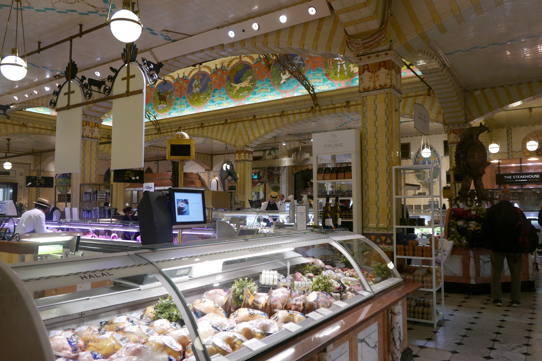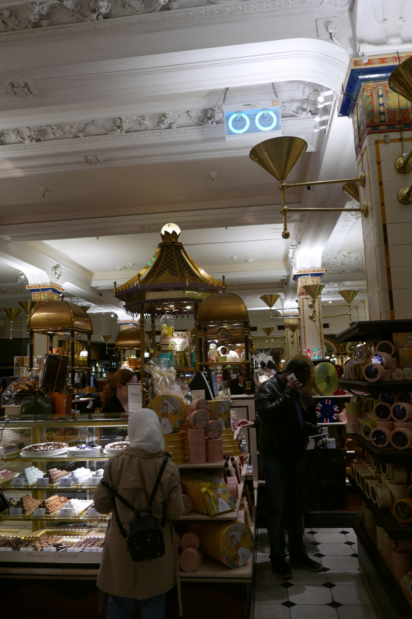 其实哈罗德百货最著名的是它地下一层的食品区Food Hall,大厅中央的巧克力甜点厅,金孔雀的门楣美艳迷人