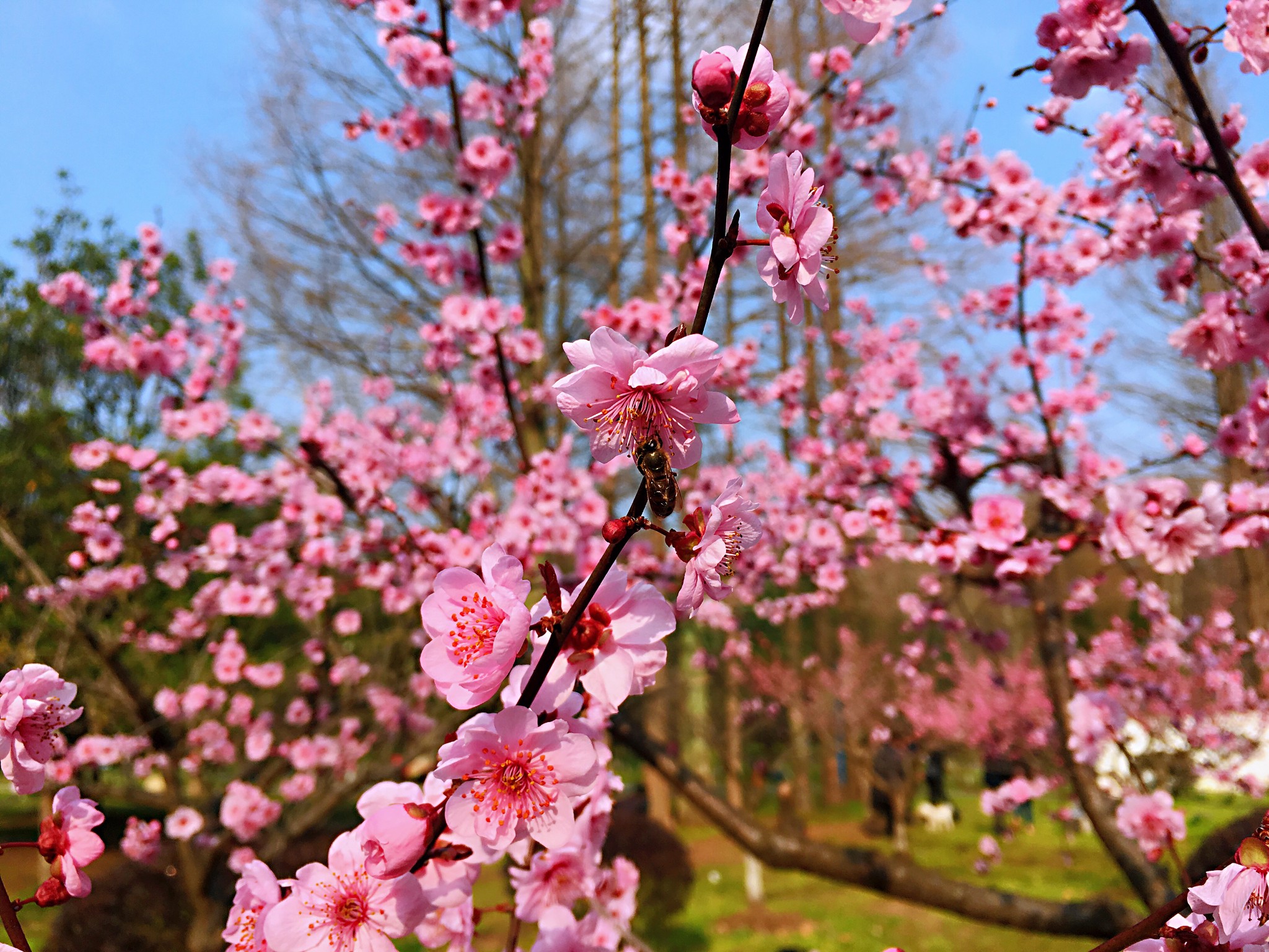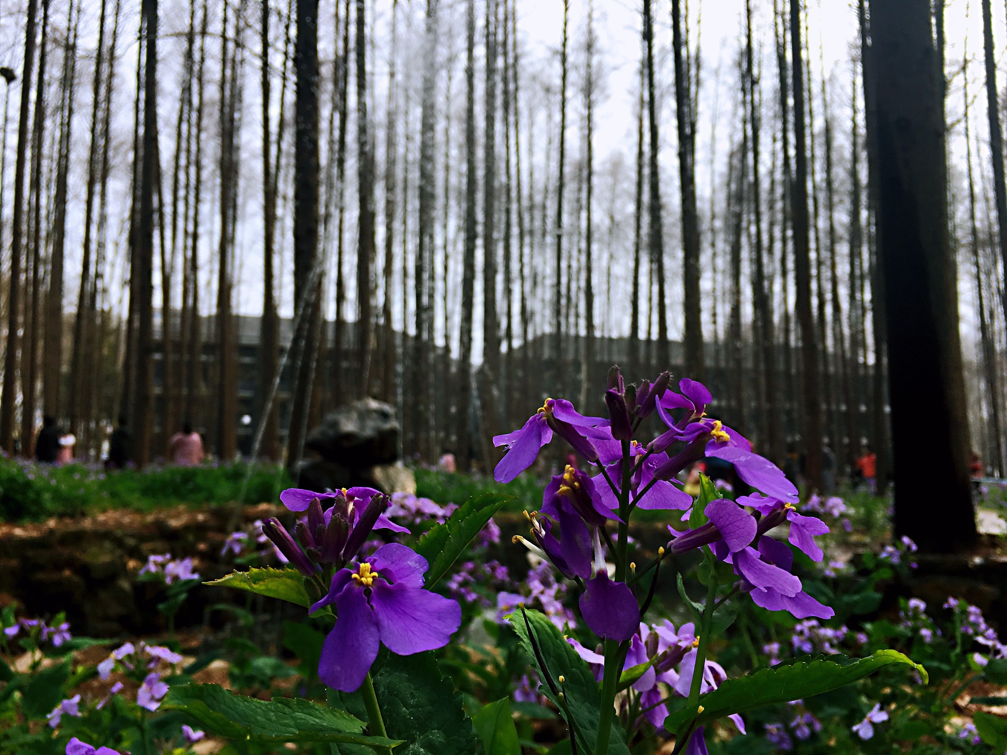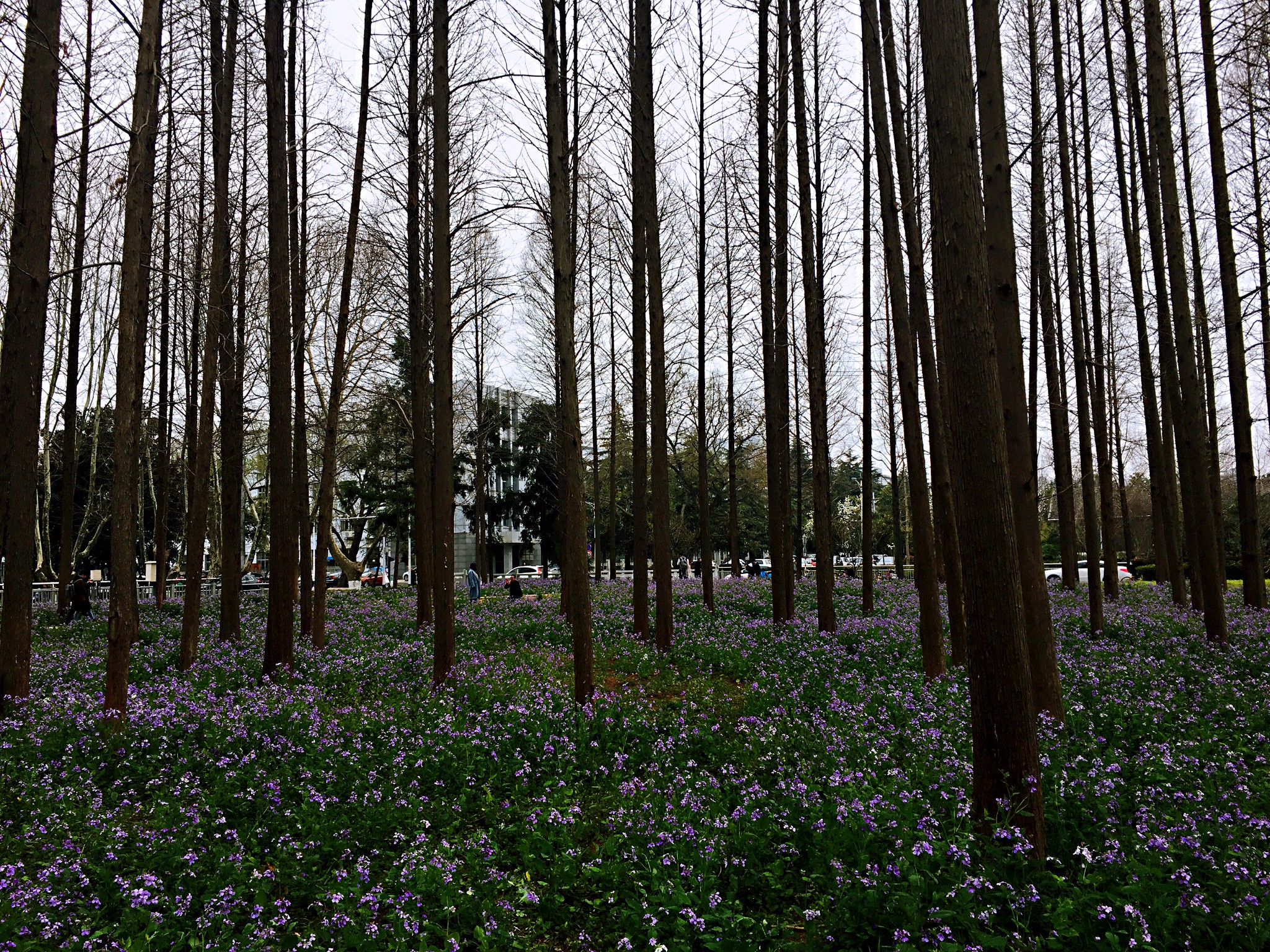 南理工的二月兰因为去年的一场大雨导致淹水,把原先密集的二月兰苗圃破坏严重,但这不影响南理工二月兰这一名头,游客依然很多,只要不进去踩踏,我想未来两年还是会恢复它原来的茂密美景,还好,水杉林还在!再加上后种植的梅园和玉兰花等,真是花色满园关不住!