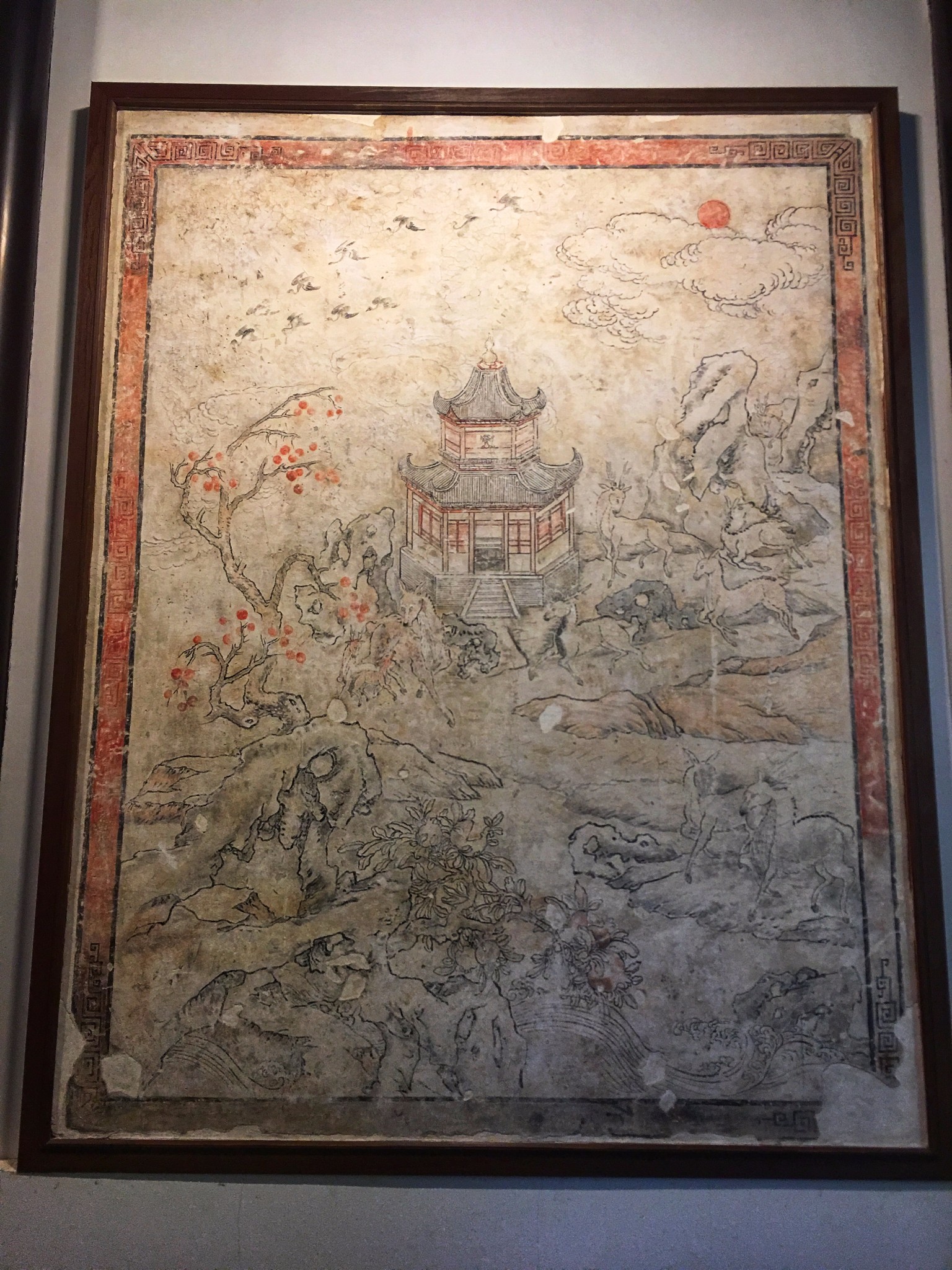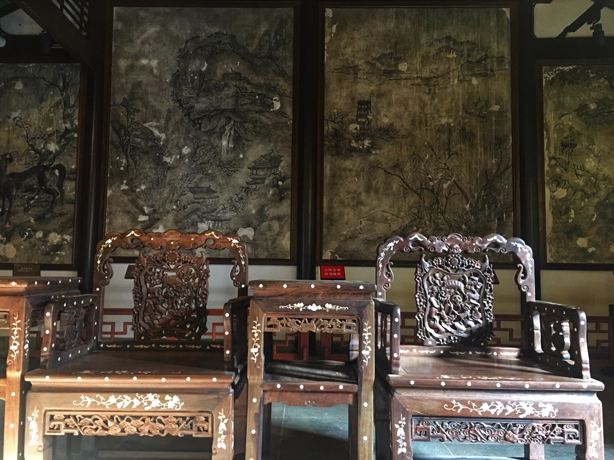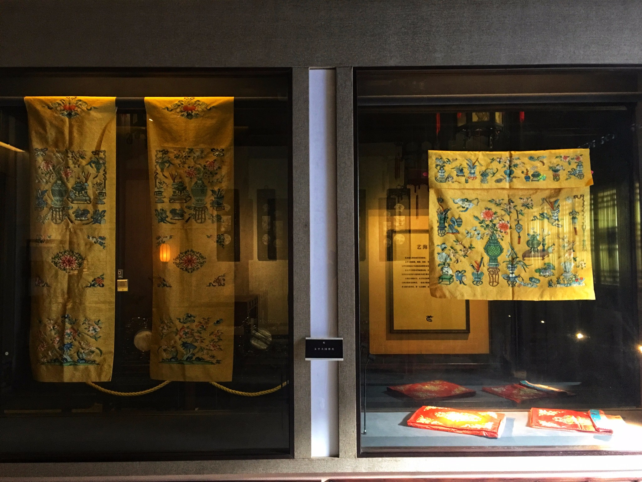 这里展出的都是太平天国时期遗存的壁画艺术,这里是 江南 一代太平天国壁画的展示中心,其中的珍品馆包含了 江南 多地发现的珍品壁画汇聚于此,主要展示的是太平天国时期政治,经济,军事,当然还有生活上的场景,有山有水有花鸟。其中最有名的是一厅的《防江望楼图》,描绘的是太平天国时期长江岸边军事设施,去的时候一定重点看看这幅,简直惟妙惟肖!如果说莫高窟是壁画艺术的经典,那么太平天国时期的壁画则可以称之为艺术高峰!