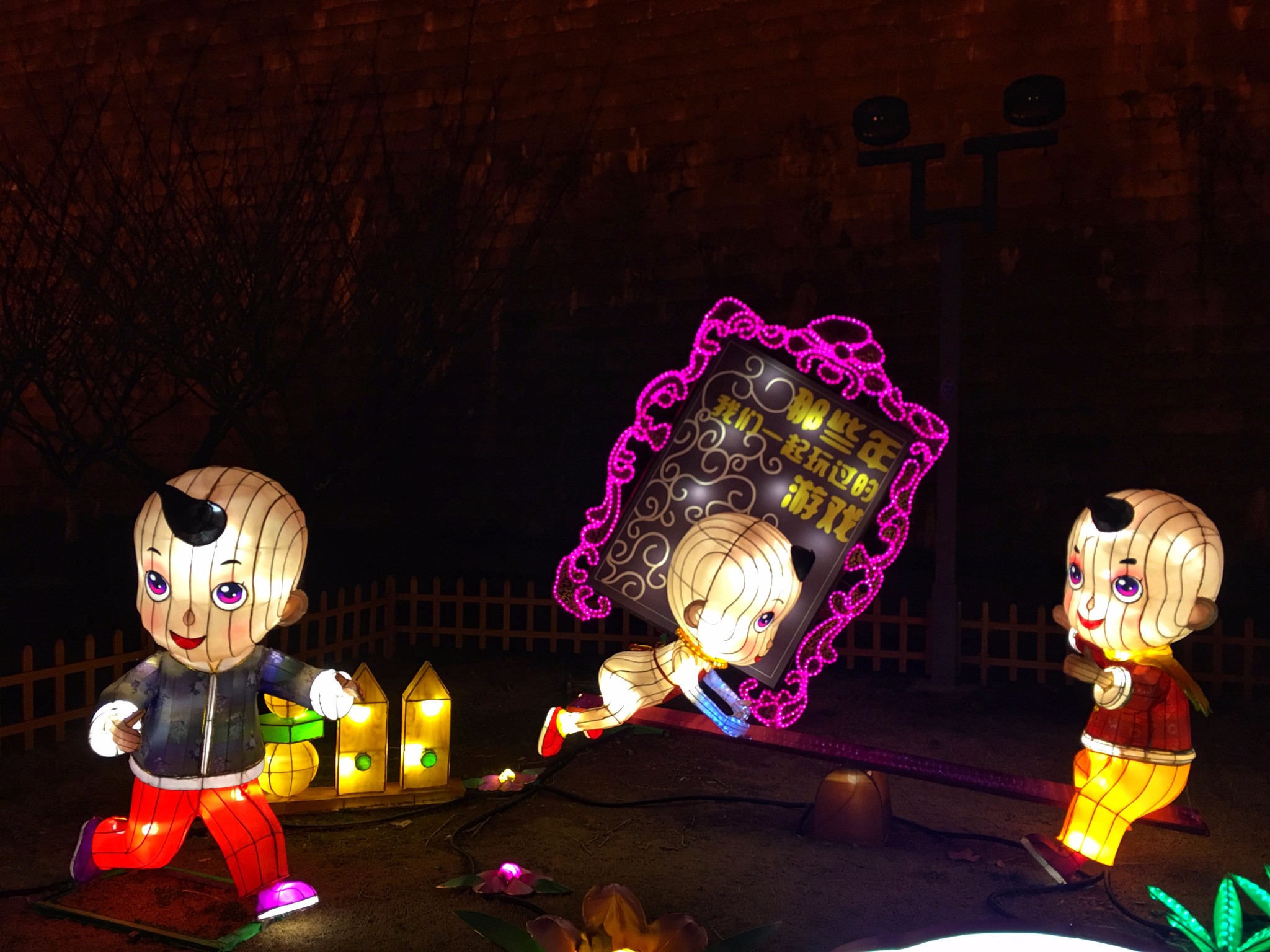 “娃娃哎,出来玩灯呃,不要你红,不要你陆(绿)就要你一根红蜡烛”“城门城门几丈高?三十 lo(六)丈高”这是