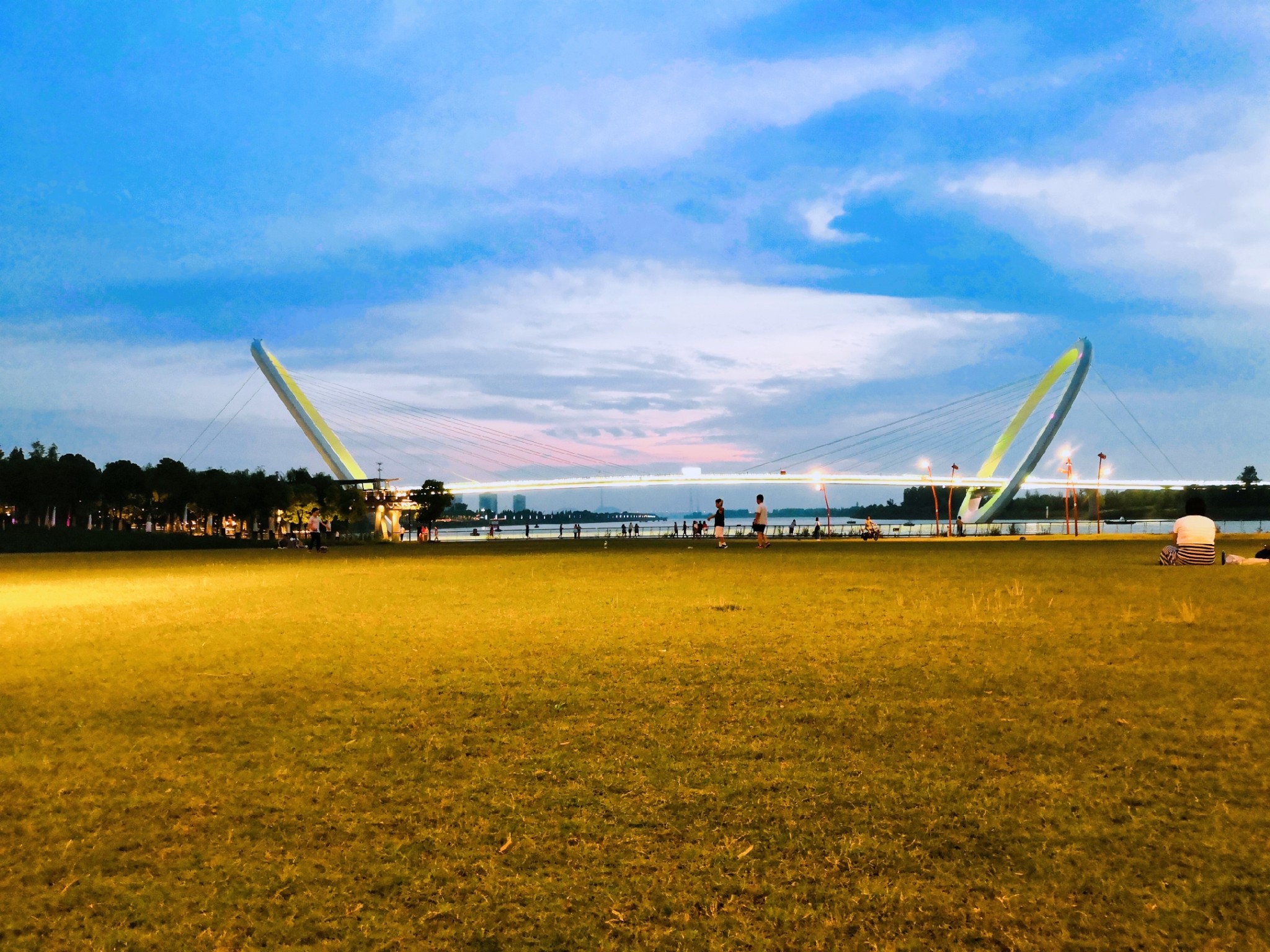 最美的夜景,又最凉爽的地方,自然非河西的青奥文化公园莫属了!14年青奥前夕建成的主题纪念公园现在已成为青奥遗产,供市民休闲锻炼,供游客参观了解!一座人行桥横跨长江之上,连接河西与江心洲。远看雄伟,近赏壮观,特别周五到周日及各节日,桥体亮化,更显炫目多姿。不论你远观还是近拍,亦或是走在桥面上都会被其惊艳到!其实午后傍晚在这里赏落日也是一个摄影的好选择!