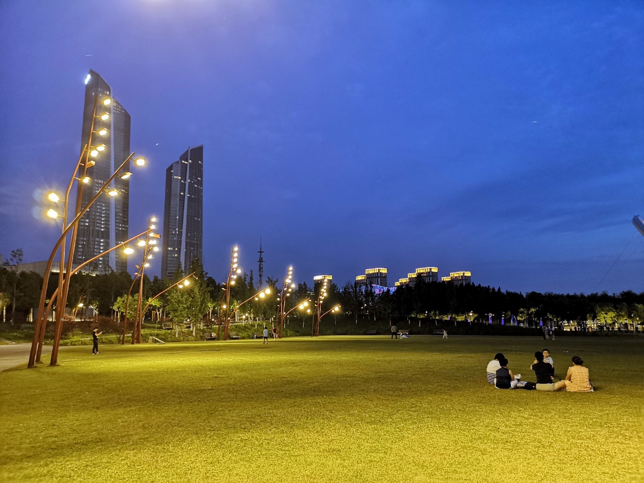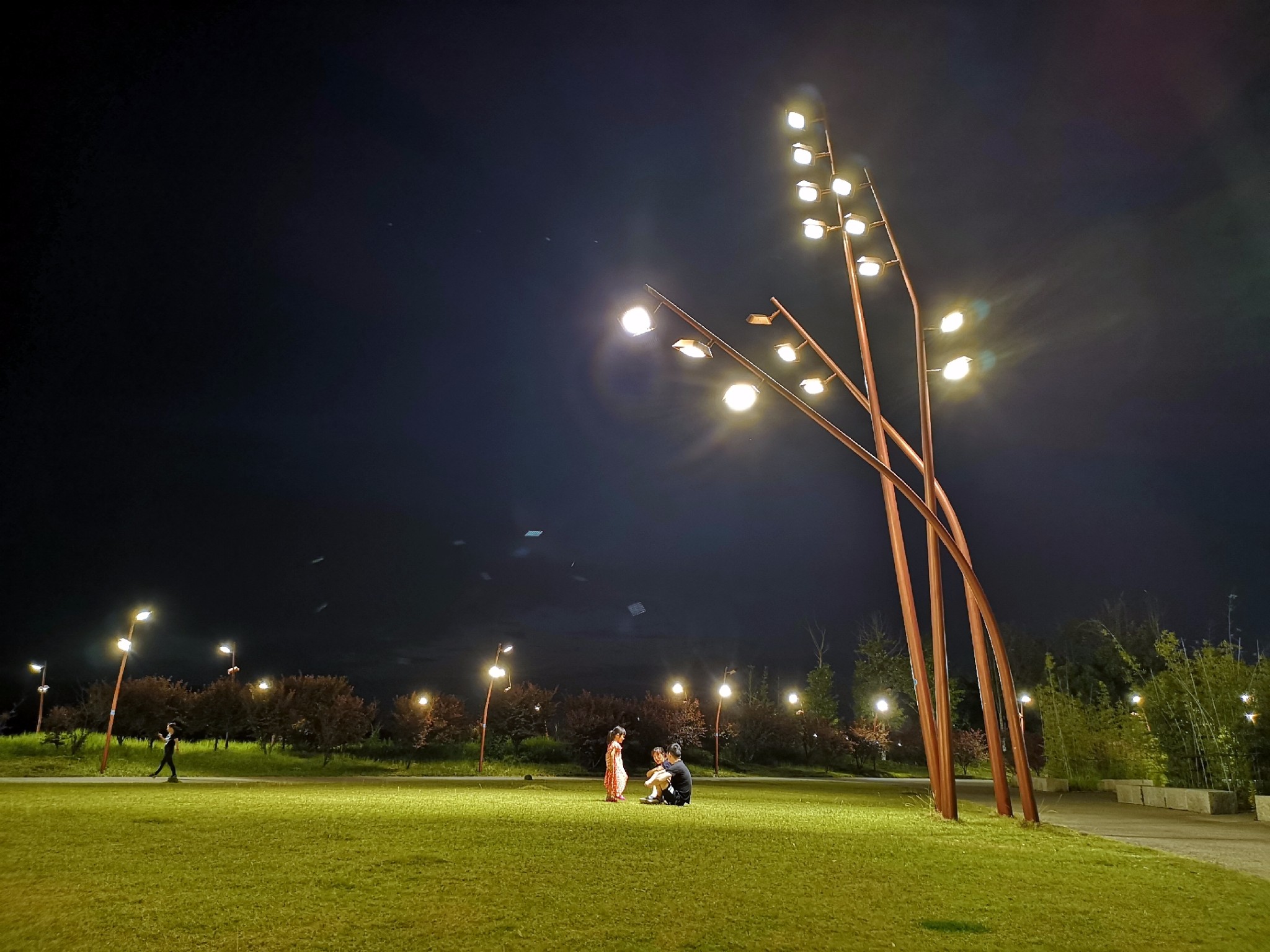 这一家三口互动的画面特别有爱,父母坐在等下,看着女儿自由奔跑转圈,然后手臂张开让女儿扑向自己!最惬意的夏日夜晚,最温馨的画面!