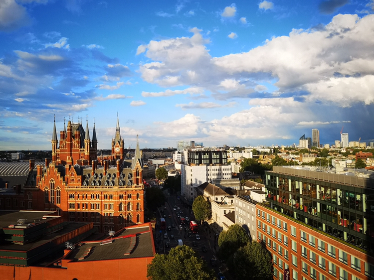 坐在巴士的高层穿城而过