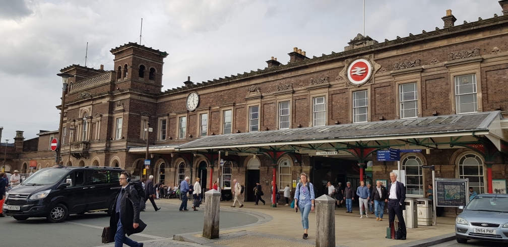 火车站正对着大海,海天一色,阴沉灰暗
