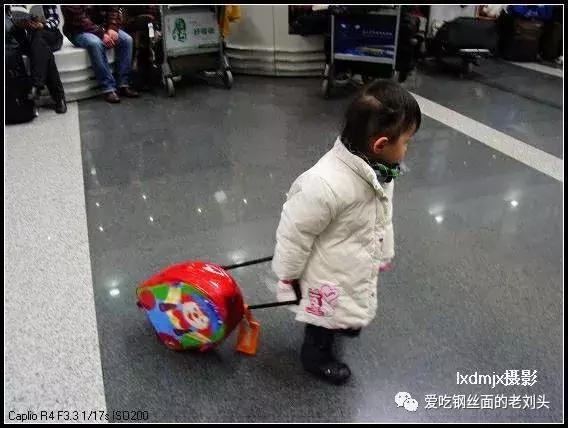 在来来往往的乘客中,眼前突然出现一个小乘客,居然也像个大人似的,拉着小旅行箱,一副悠闲自得的样子跟在妈妈身后,寸步不离走向候机大厅。看着几岁大的孩子开始坐飞机了,心里好羡慕,自己五十多岁了才第一次坐飞机。