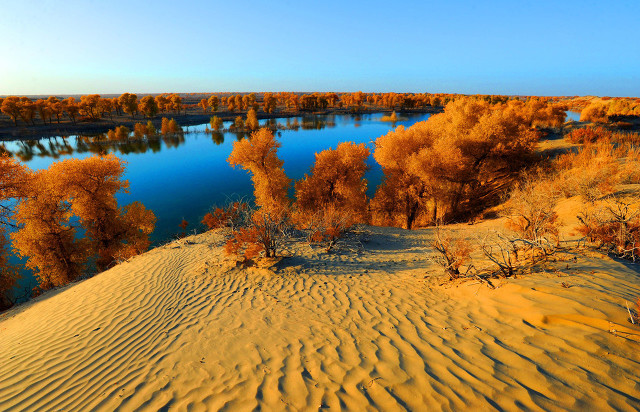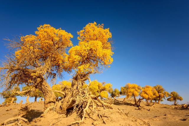 众所周知,世界90%的胡杨在中国,90%以上的胡杨林主要分布在新疆,而其中的90%又集中在南疆的塔里木盆地。因为地域和天气温度的不同,每个地区的胡杨林,也有着不同的特点。昌吉木垒县的胡杨沧桑似老者;巴州尉梨县的胡杨秀美似姑娘;轮台县小草湖的胡杨似丰满的少妇;塔克拉玛干大沙漠边缘的胡杨似英俊的男...显示全部