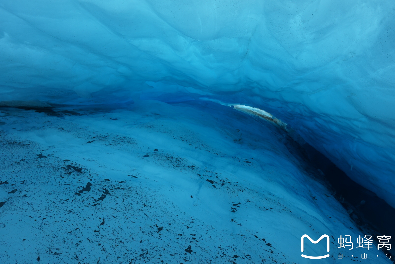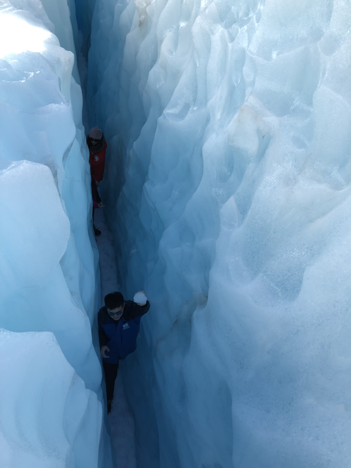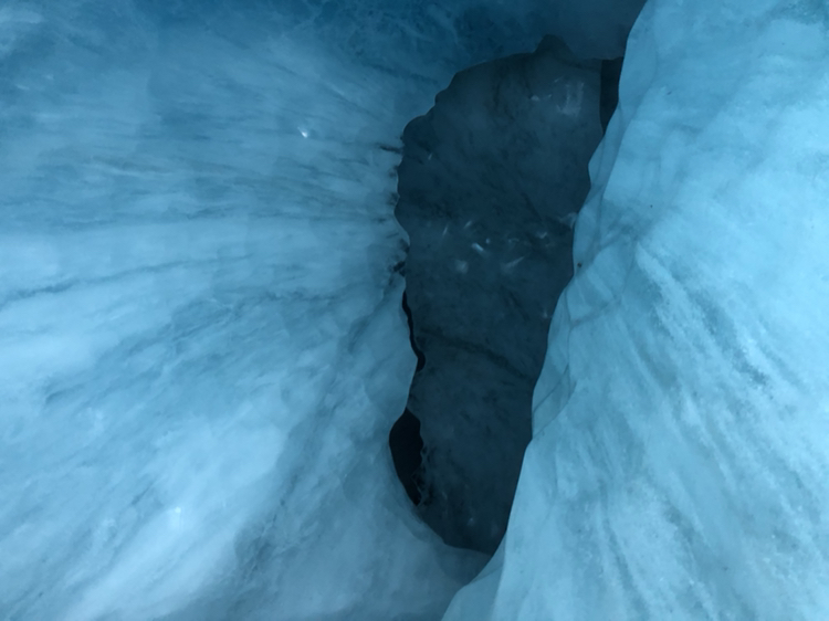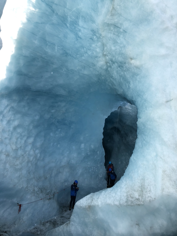 两个向导不仅会带我们徒步,还会跟我们科普些冰川的小知识,偶尔还会恶作剧下带我们钻一些冰洞。冰洞很狭窄,一般就只能一个人勉强爬过去,即使钻了过去,全身也弄得很湿,但我们每个人都乐此不疲,毕竟象这样深入接触冰川的机会不是很常有的。