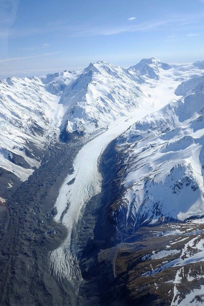 国家公园,是 南阿尔卑斯地区最大的国家公园,总面积达7万公顷,超过3000米的山峰有19座,且拥有 最高峰奥拉基库克峰,以及最大的冰川 塔兹曼冰川。该冰川有着200万年历史,长达27公里。自从30年前塔兹曼冰河形成以来,冰川后退的速度明显加快,湖面的扩大加速了冰川末端的融化。如果时间有限,不想走 的西岸那边,至少可以省两天时间,而且天气没西海岸那么不稳定,能飞的概率高,但有两个缺点:1、贵(555NZD);2、 冰川比较平,大部分都被砂石遮盖,单论冰川没有那两个漂亮。