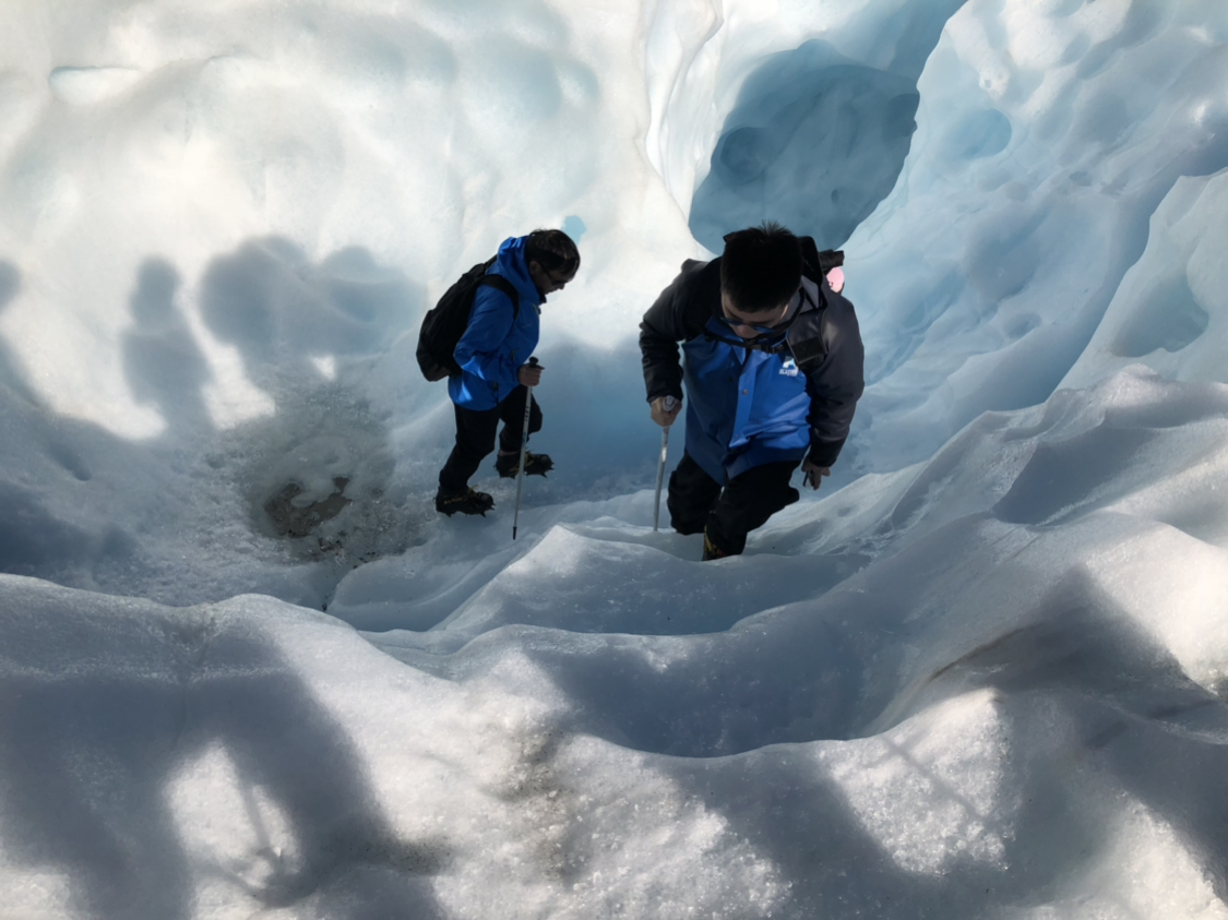 tips:可以携带空的水壶,在冰川上可以饮用到纯天然干净的冰川水,可以在徒步的过程中接点。此外,背包不要背太过于厚实,因为有一段需要爬冰洞。轻装上阵!