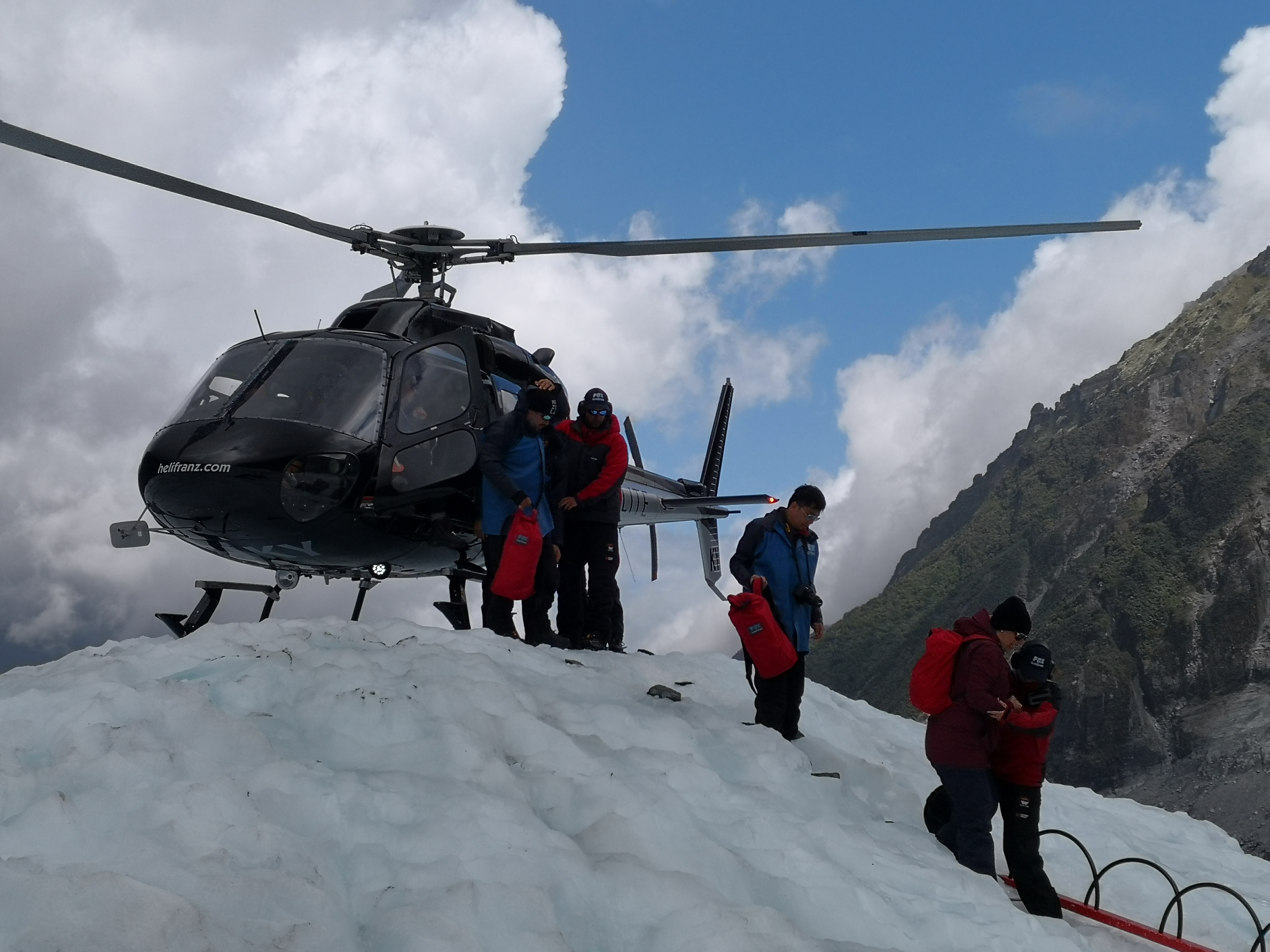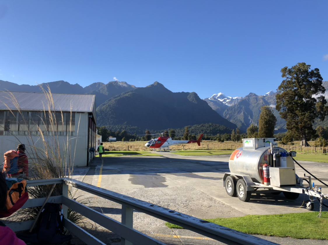 冰川徒步只需要半天的时间,真正在上面走也就只有一个多小时,完全不需要担心体力的问题。我们预定了早上九点的场次,抵达之后工作人员会安排去换衣服、交代安全事项,然后带去等待直升机接我们到达徒步地点。我们大约在接近11点抵达徒步地点,1点左右也就结束了全部行程。徒步之后还有温泉可以泡,与徒步的票是一起售卖的不需要额外费用。