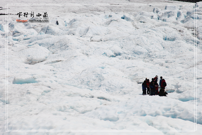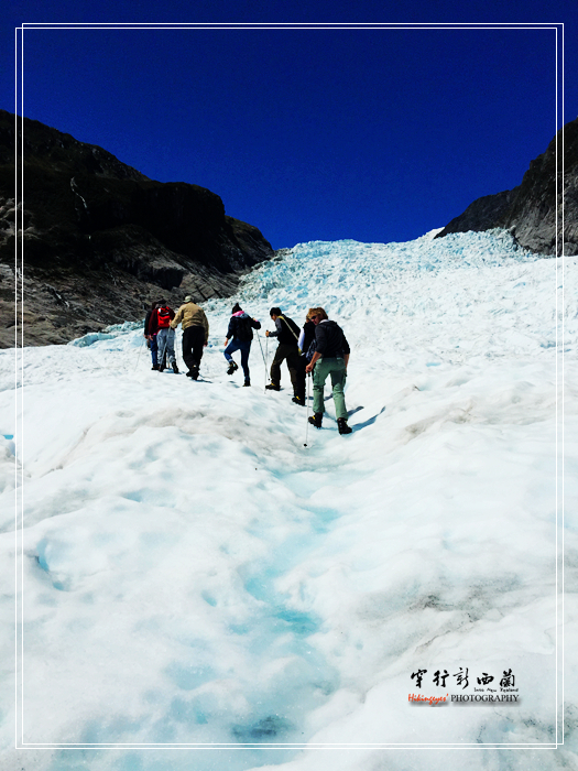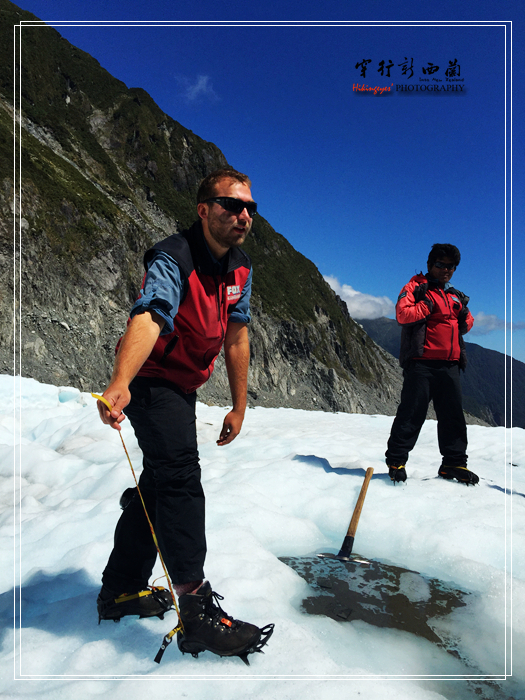 人,黑点的来自 尼泊尔 。然后他们将我们分成两组,分别沿着不同的线路开始我们的冰川徒步探险之旅。在向导的带领下,我们开始在冰川上行走。向导随身带着一把冰镐,为我们开路。冰川很奇妙,表面是白色的,可是往里面看确是晶莹的淡蓝色。据说这里的冰川厚达100米,一直延伸到山下。其实在冰川上行走也是件不容易的事,一是冰爪很重,穿着它爬上爬下非常不方便,二是冰川上本来就没有象样的路,有的时候不得不手足并用,三是虽然20多度的温度不算太高,但是紫外线的辐射还是相当厉害,建议一定要做好防护,否则回来脸上就 会晒 成熊猫眼了。