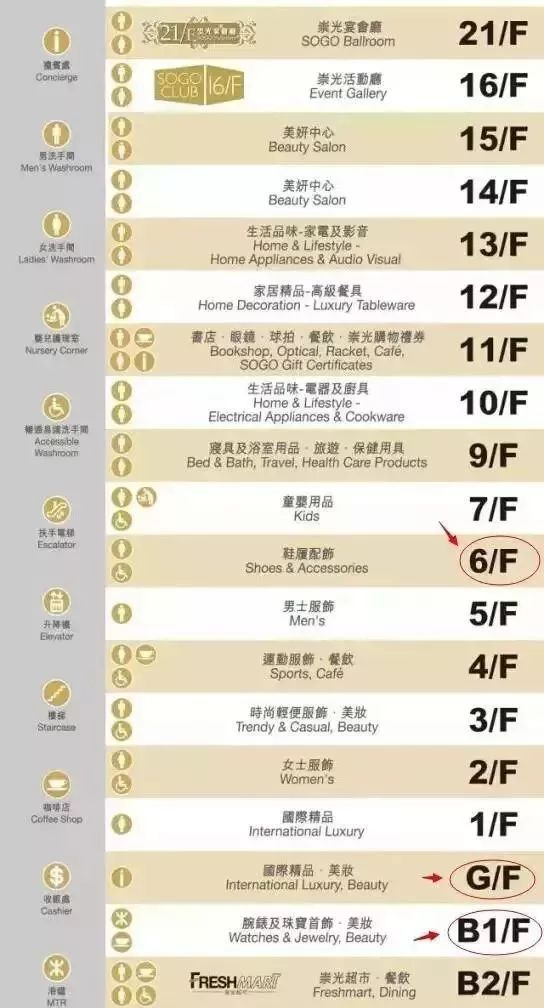 在一楼大厅拿一张楼层地图指引,上面都分类写好了店铺位置,买衣服就在服装类别里找你想逛的品牌,然后按照楼层去找就好,如果没有目的闲逛,那边电梯超级难等,建议你电梯到顶,一层一层往下逛会省力气一点。